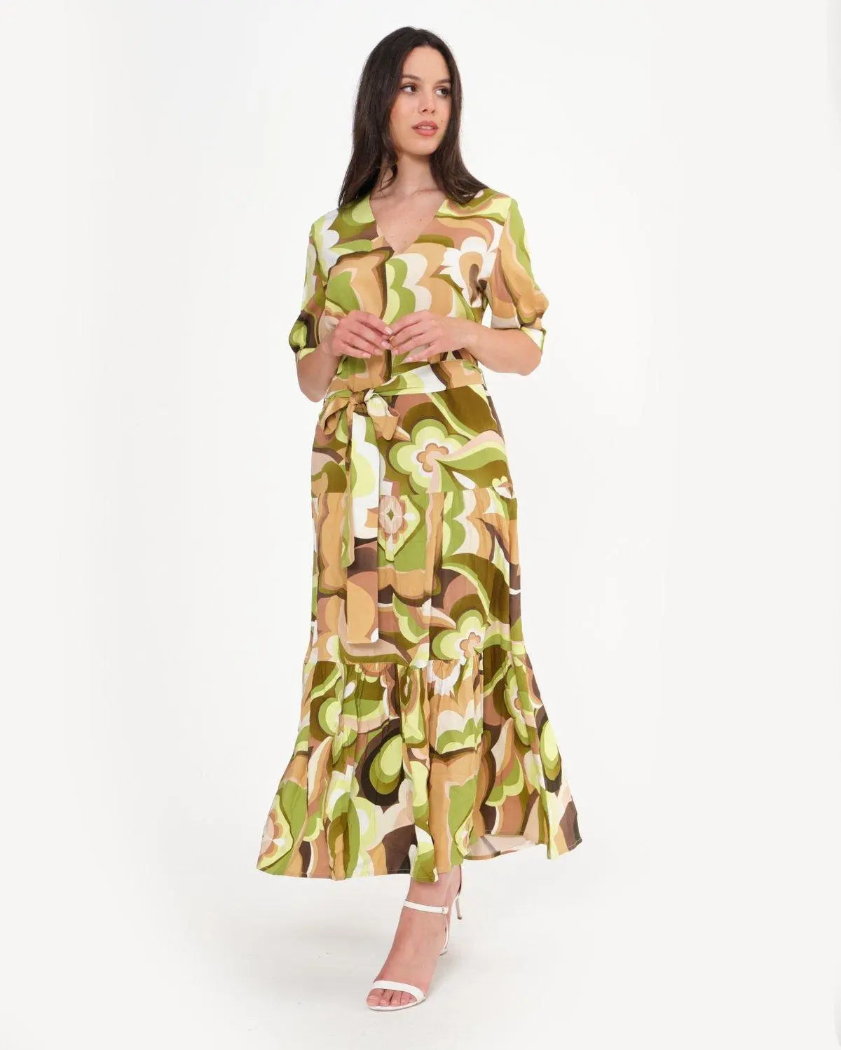 Abito lungo in fantasia VERDE