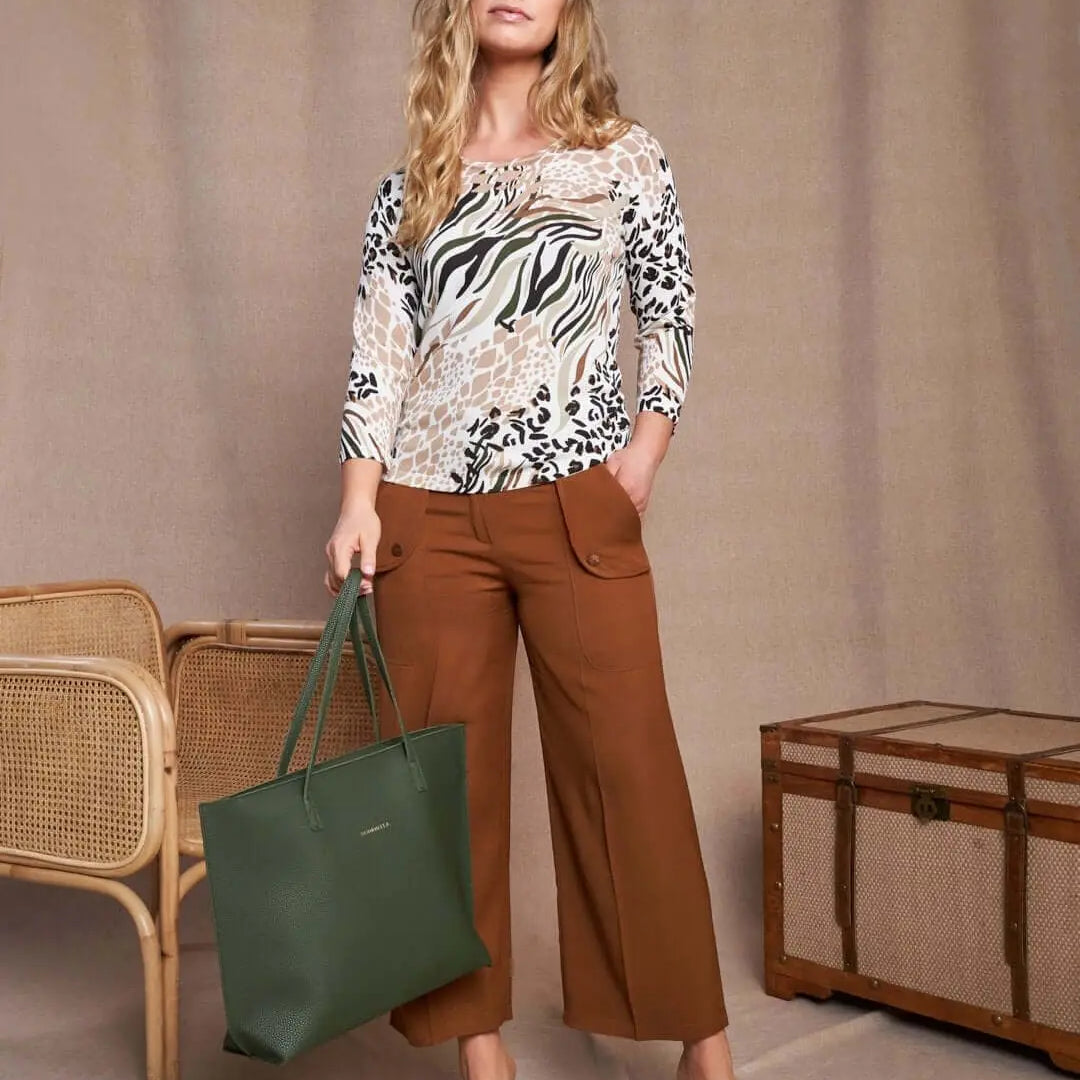 Maglia girocollo in filato di misto viscosa con fantasia animalier OFF WHITE