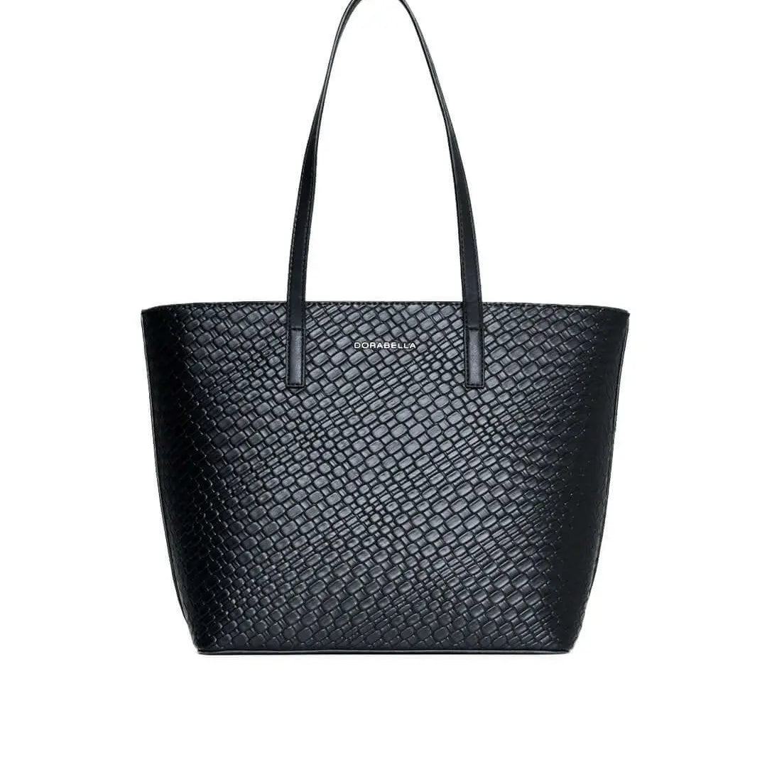 Borsa shopper media in ecopelle con motivo ad intreccio NERO