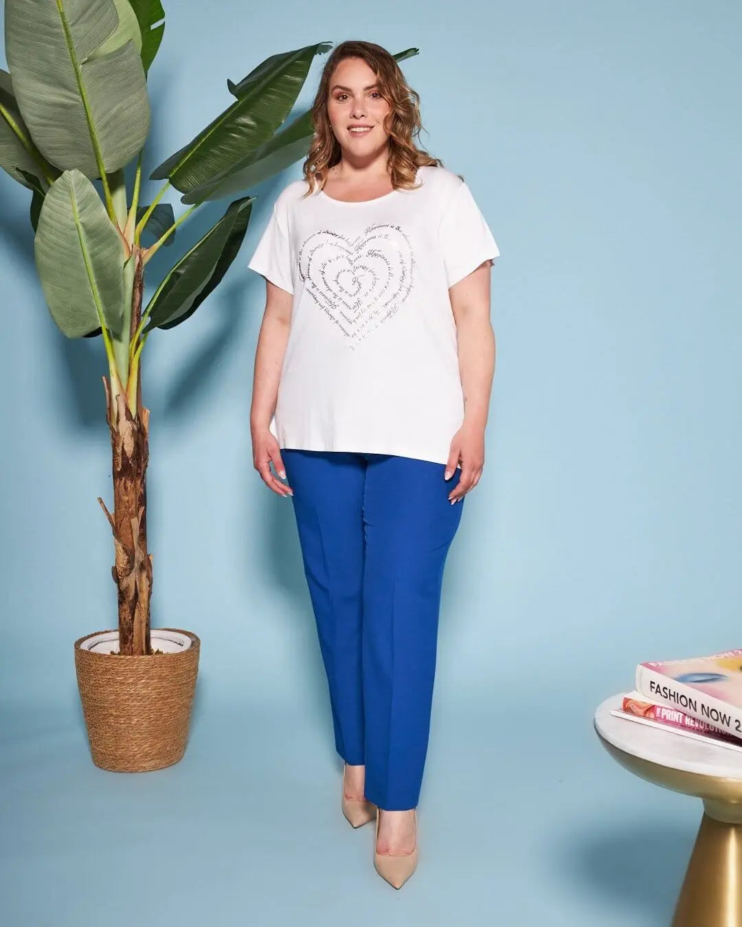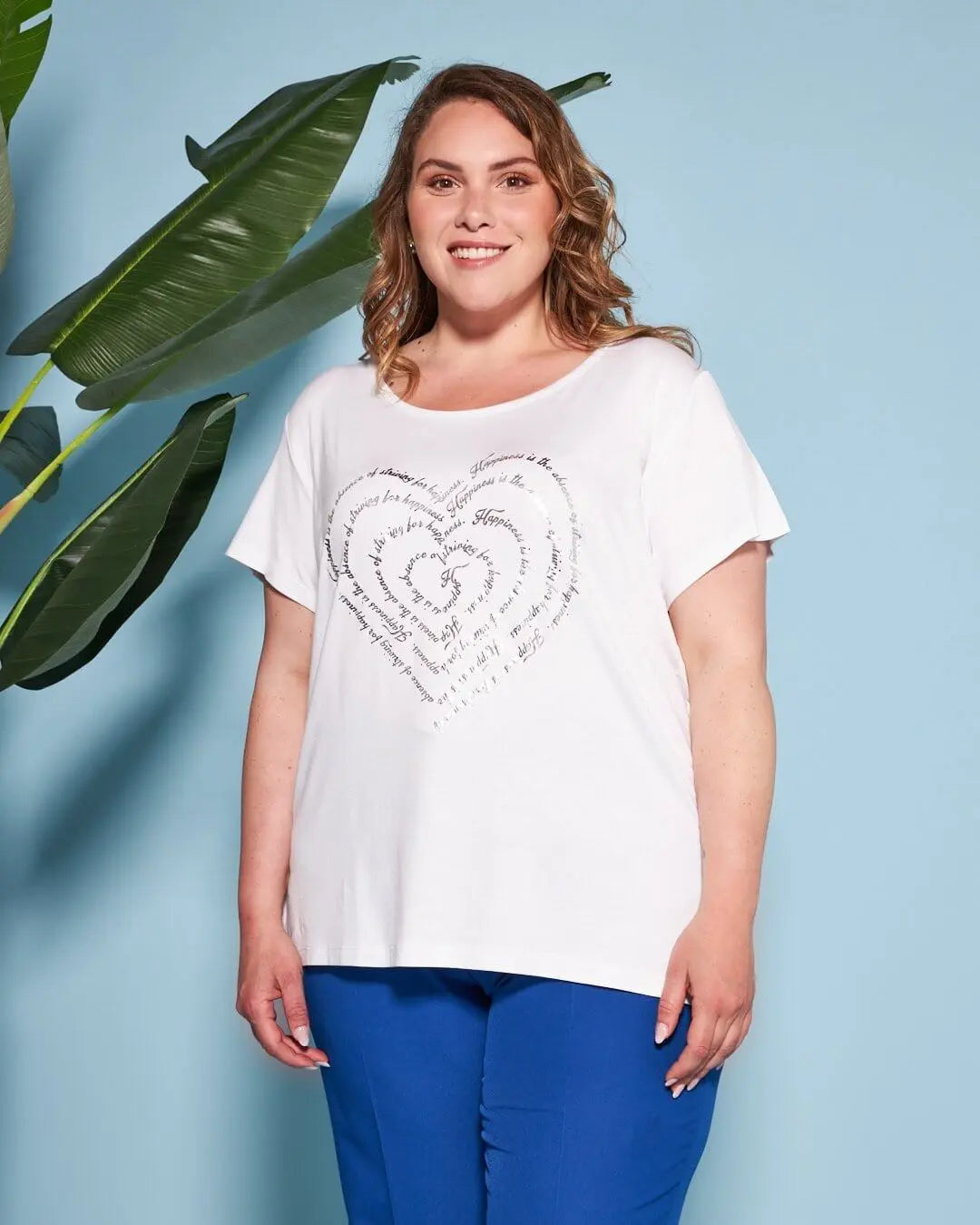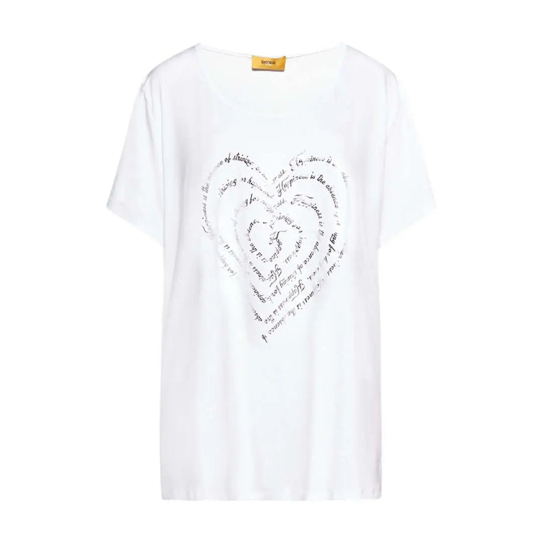 T-shirt in jersey di viscosa elasticizzata con stampa cuore BIANCO