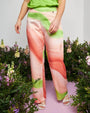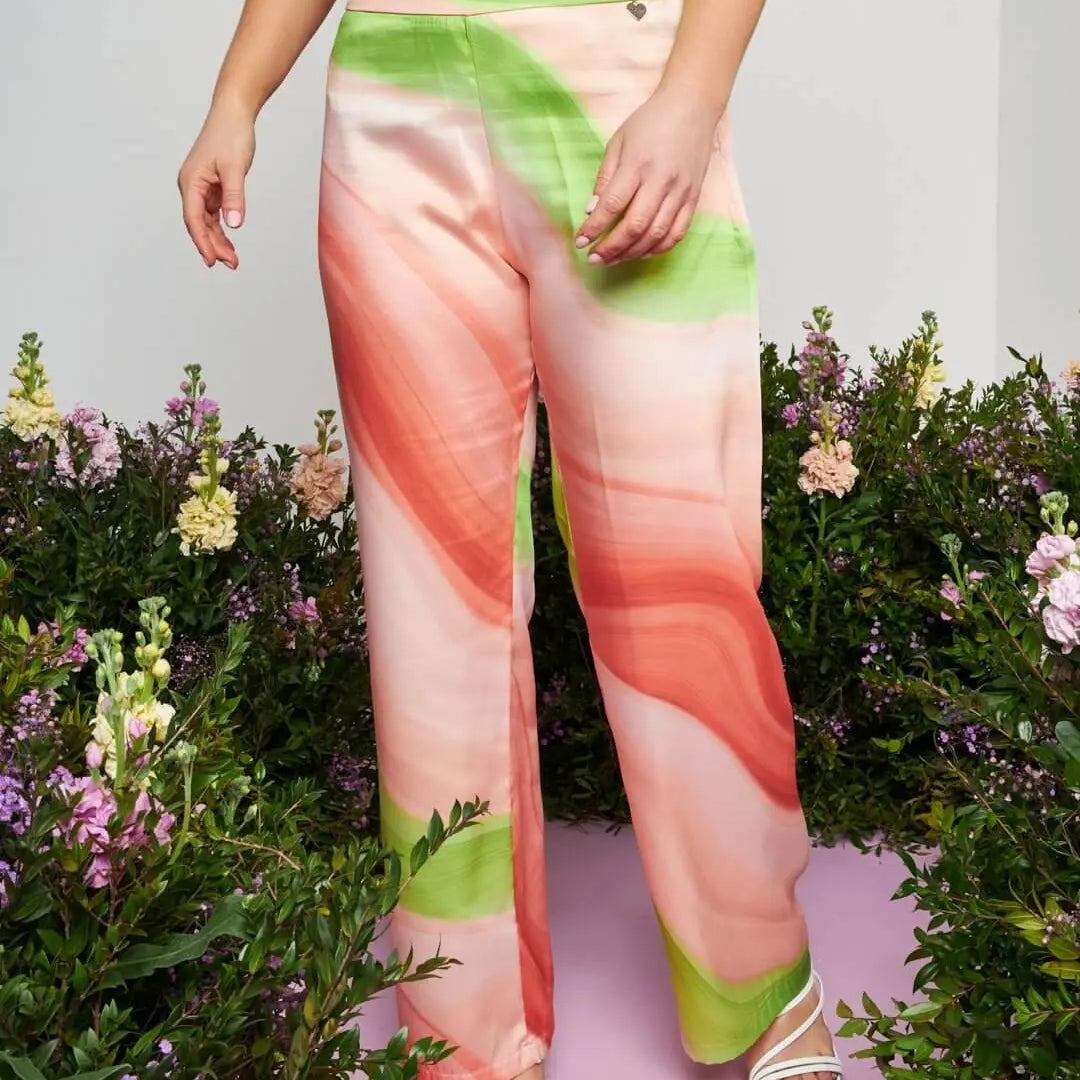Pantalone a gamba dritta in raso con fantasia astratta sfumata CIPRIA