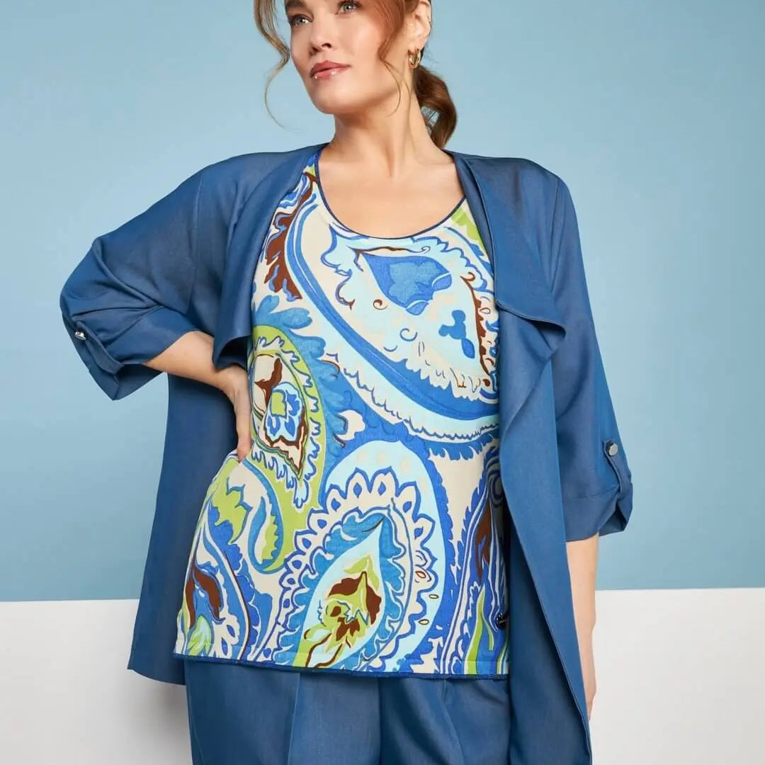 Spolverino in chambray di misto viscosa elasticizzata con maniche a tre quarti DENIM