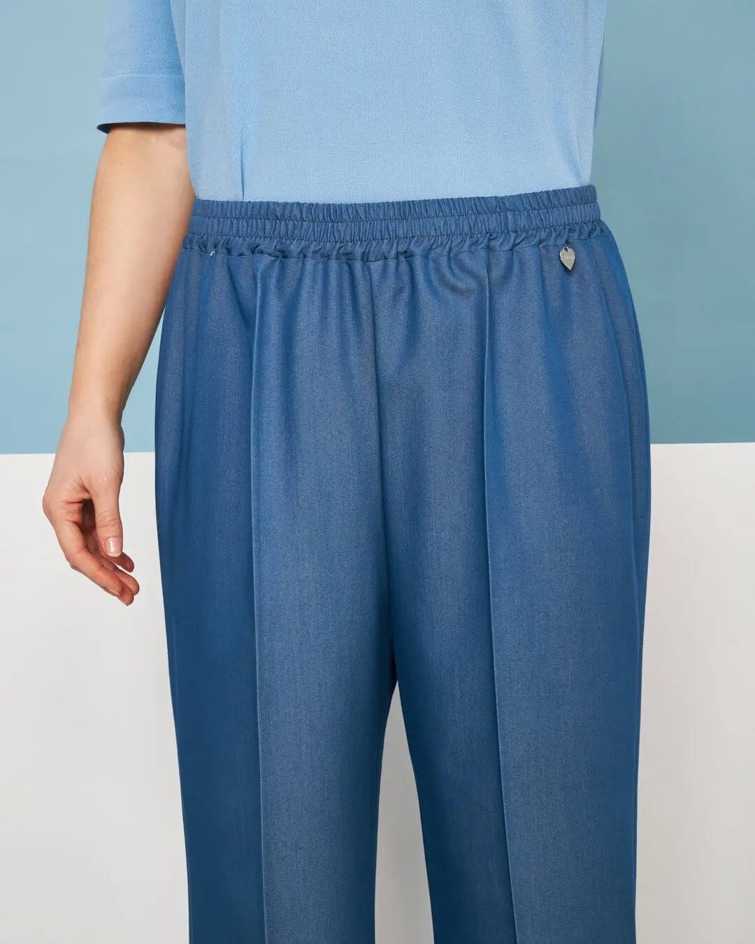 Pantalone capri in chambray di misto viscosa con bustino elastico DENIM