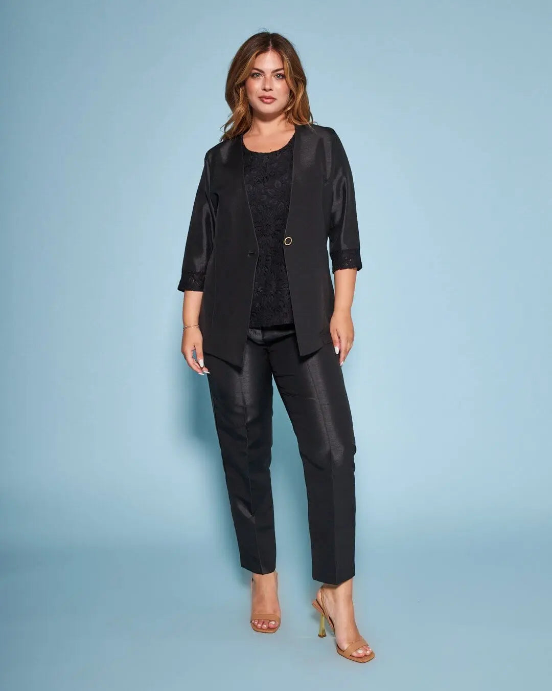 Giacca monopetto senza collo in shantung con inserto in pizzo sul fondo manica NERO