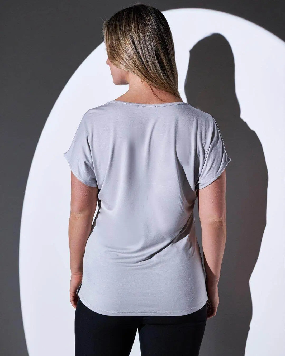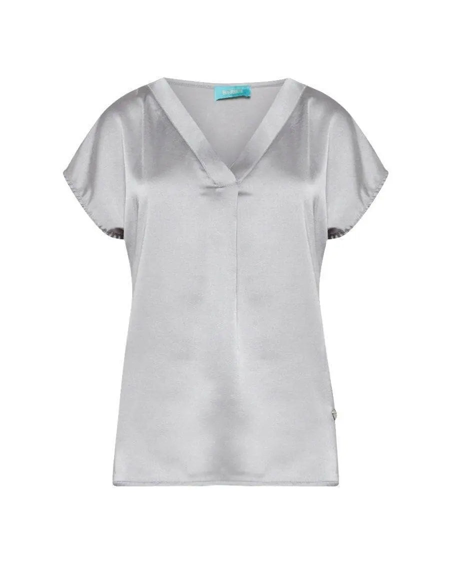 T-shirt scollo a V in raso con retro in jersey elasticizzato GREY