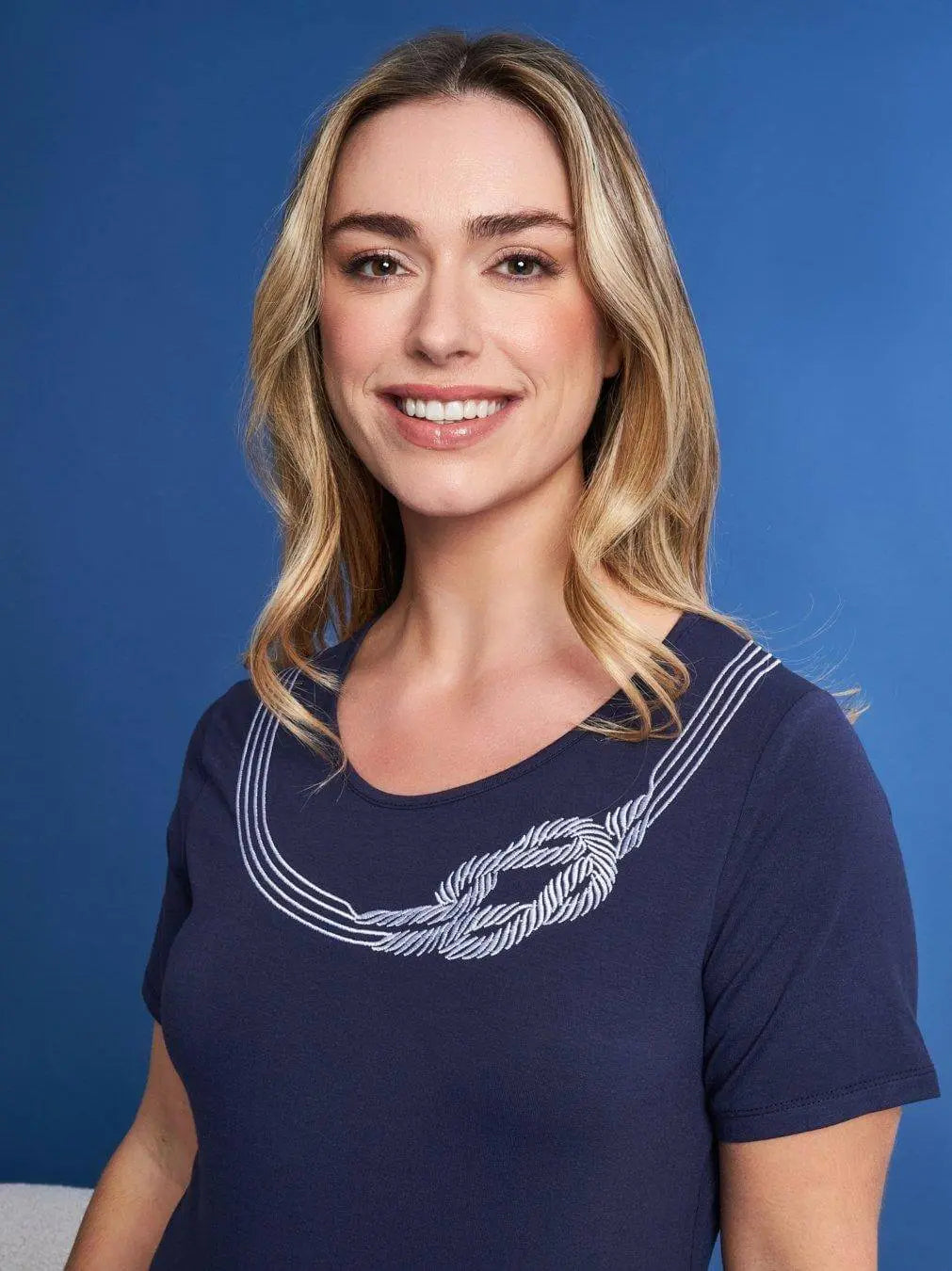 T-shirt mezza manica in jersey di viscosa elasticizzata con ricami lurex BLU