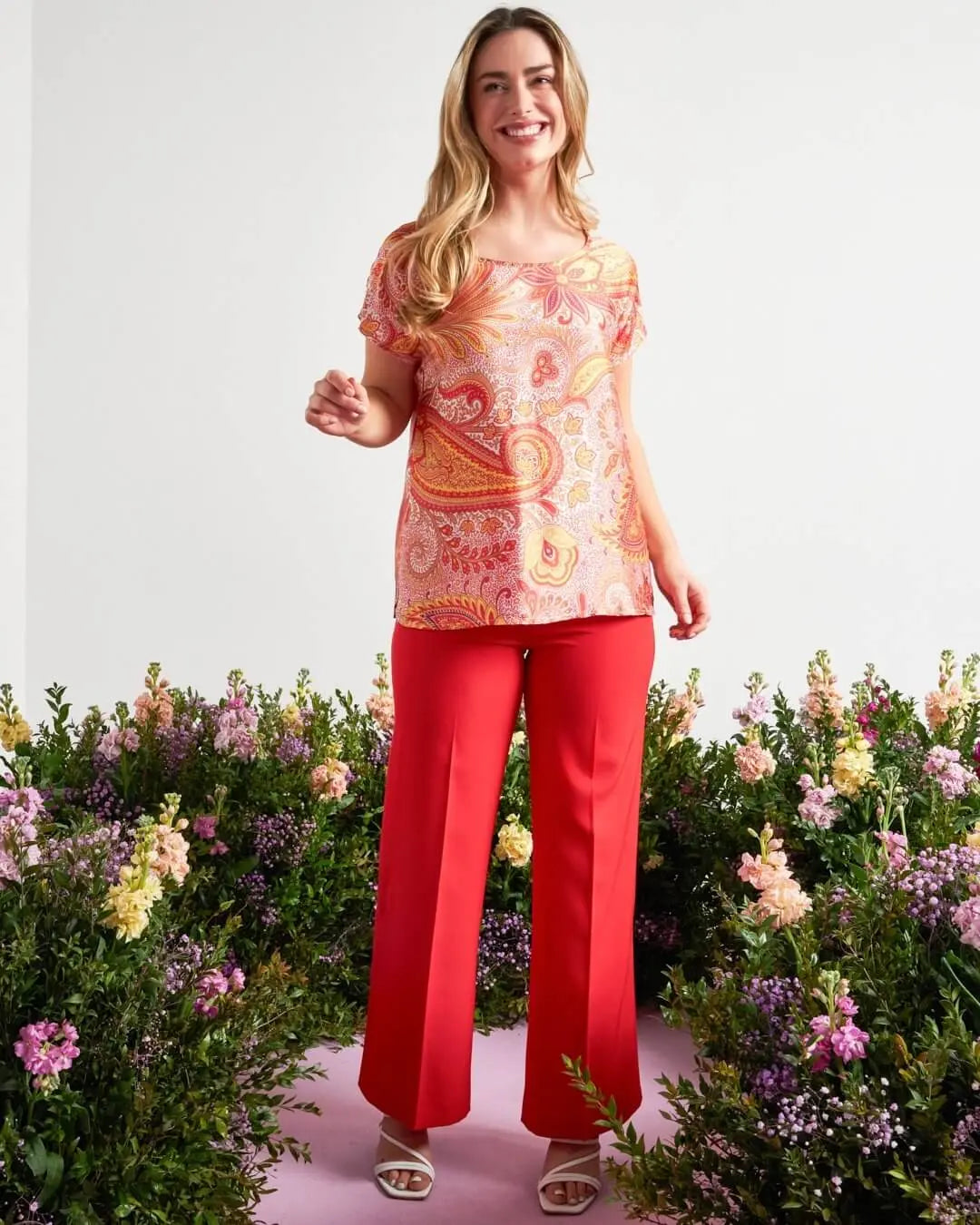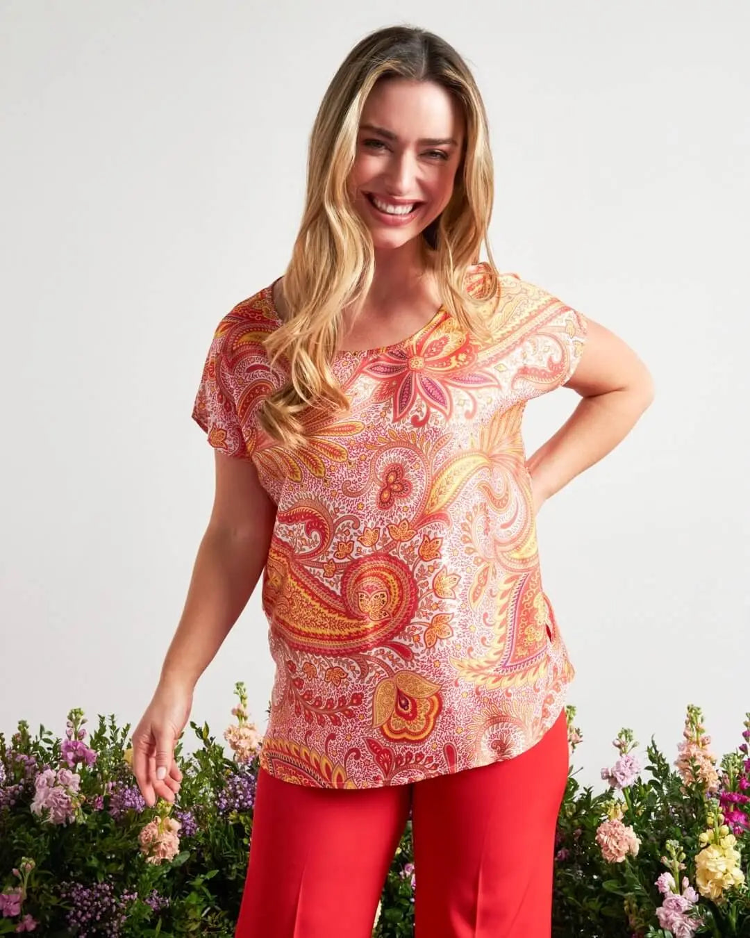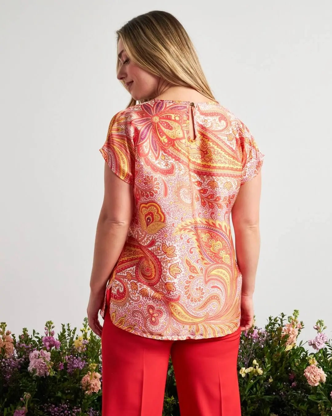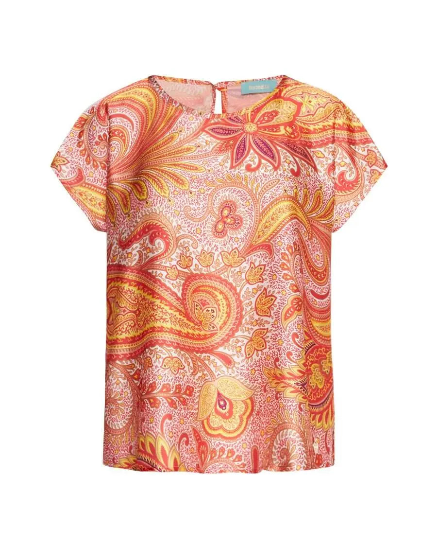 Casacca a maniche corte in raso con fantasia cashmere PAPAVERO