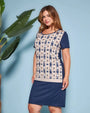 Pantalone capri zampetta in misto viscosa elasticizzata con fantasia a righe jacquard. BLU
