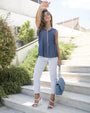 Pantalone skinny in misto cotone jacquard con fantasia a righe BIANCO-BLU