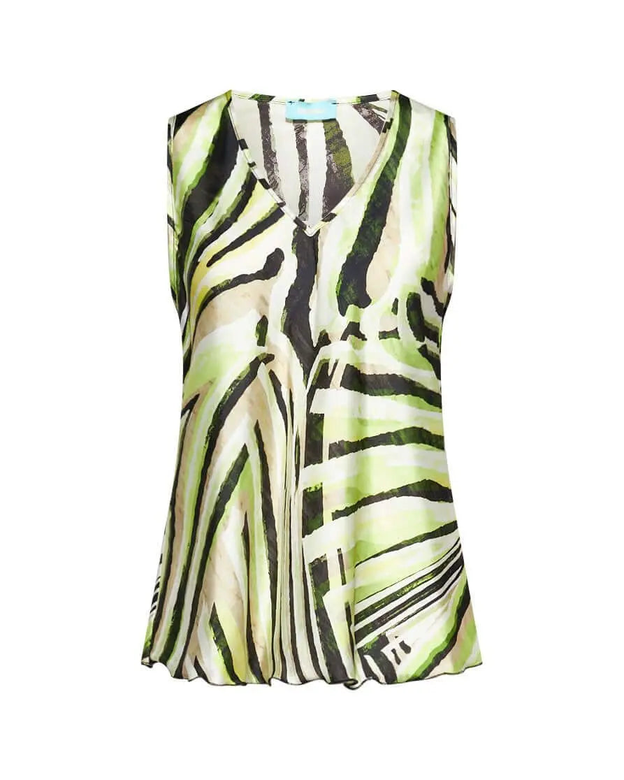 Top smanicato in raso con fantasia multicolore e scollo a V. LIME