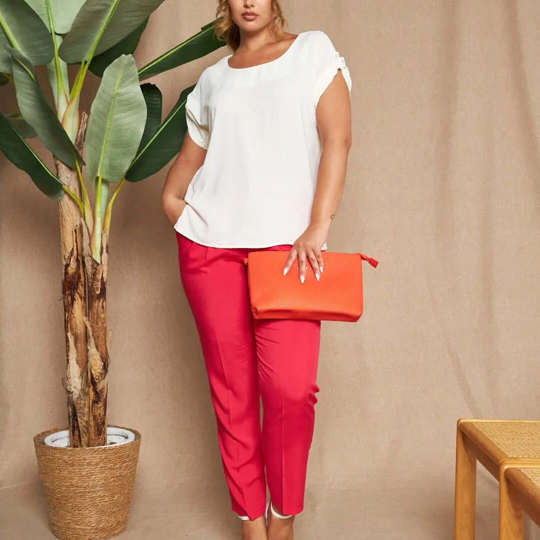 Pantalone a gamba dritta in twill di viscosa tinta unita con coulisse in vita. FRAGOLA
