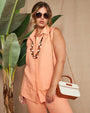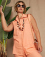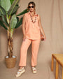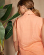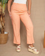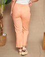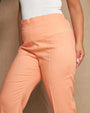 Pantalone a gamba dritta in tela di lino e viscosa tinta unita con spacchi sul fondo gamba. SALMONE