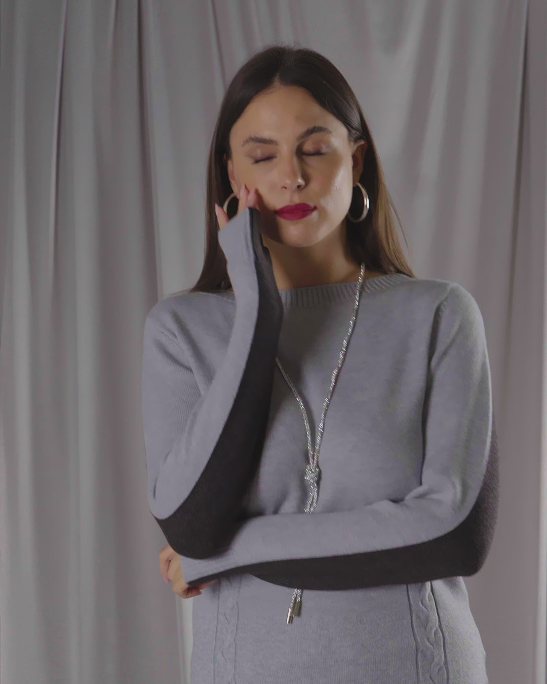 Maglia bicolor con scollo a barca GRIGIO CHIARO