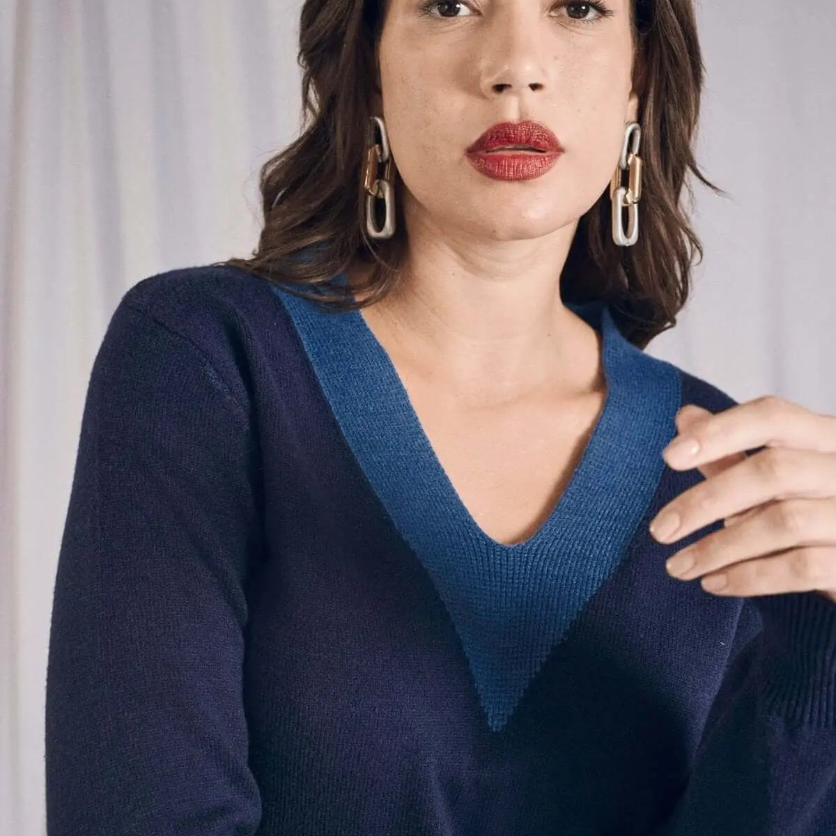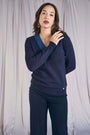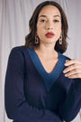 Maglia a girocollo con intarsio a contrasto BLU