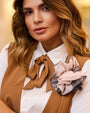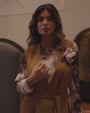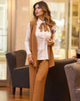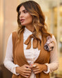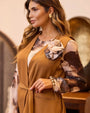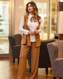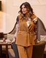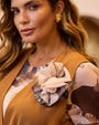Gilet in crêpe elasticizzato tinta unita con cintura in vita e spilla con fantasia floreale astratt NOCE