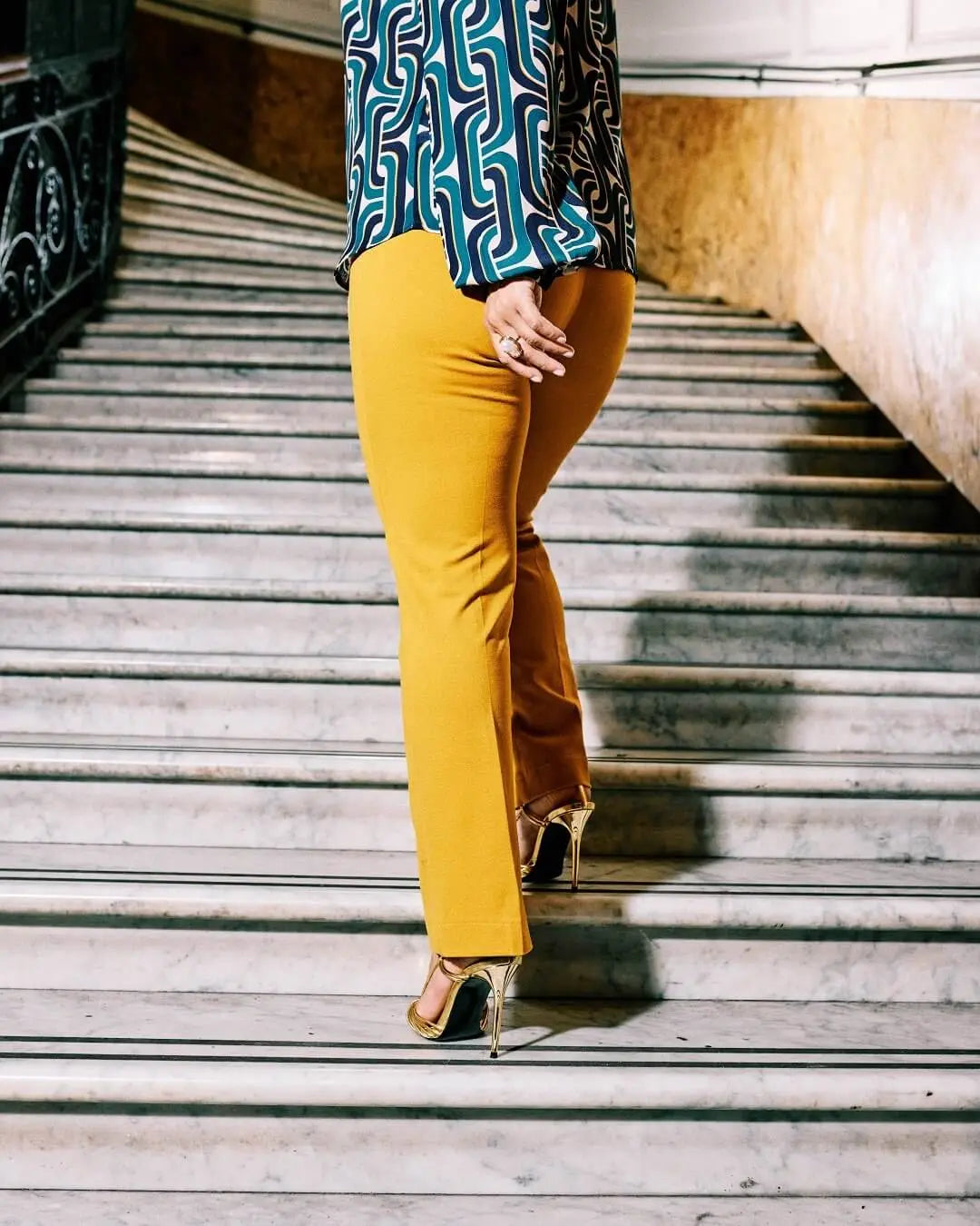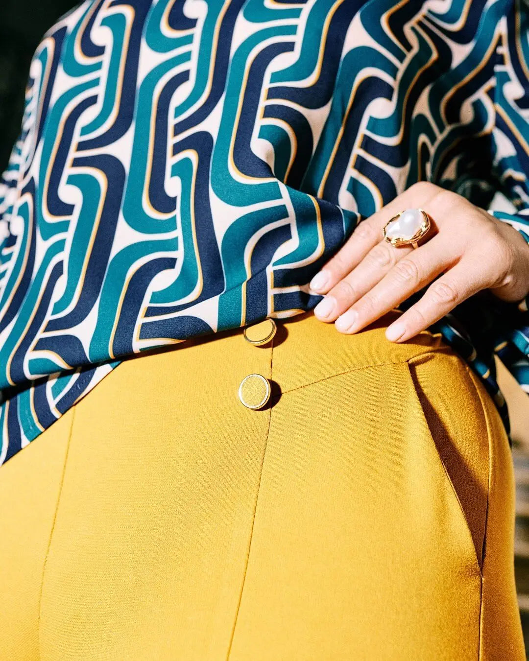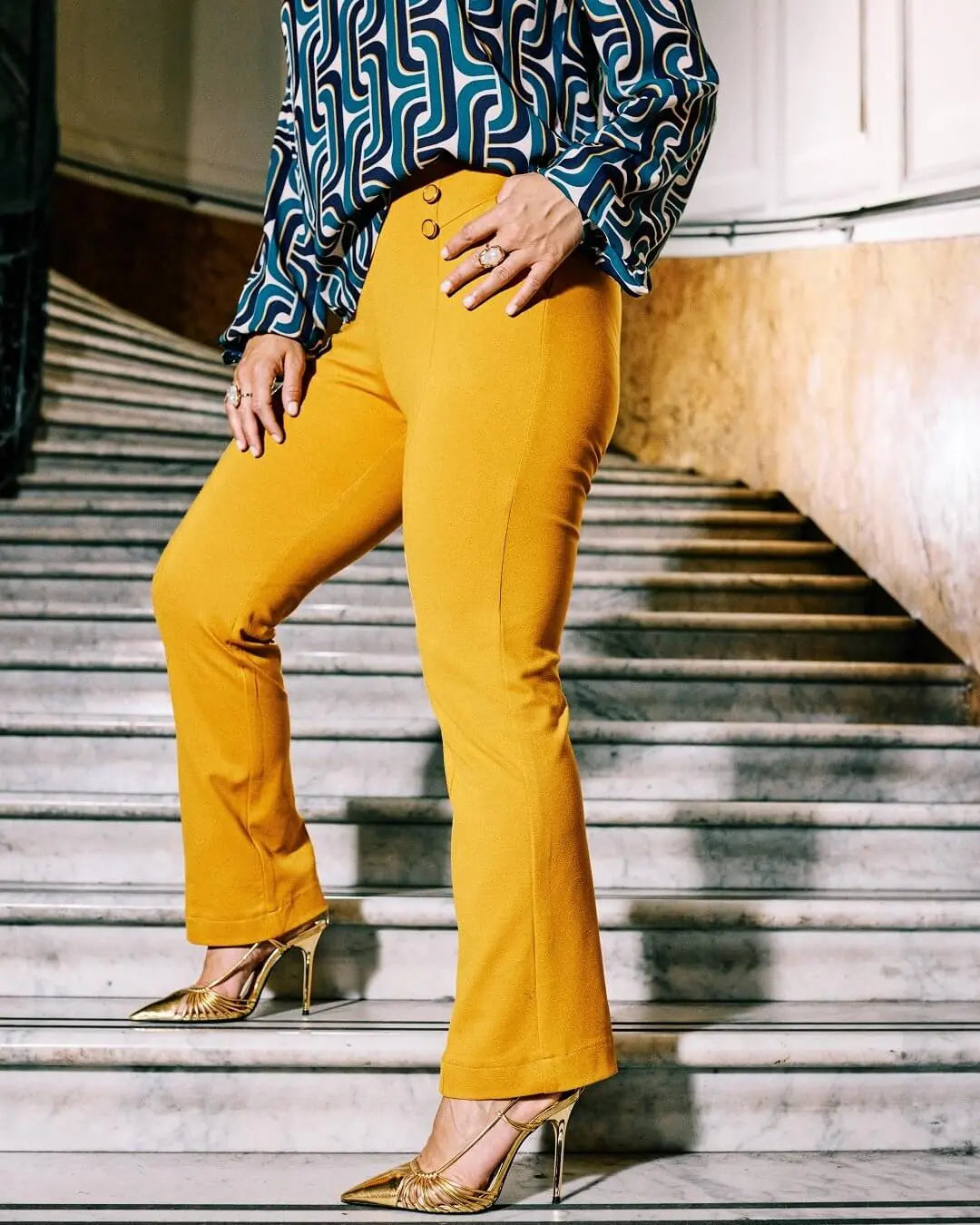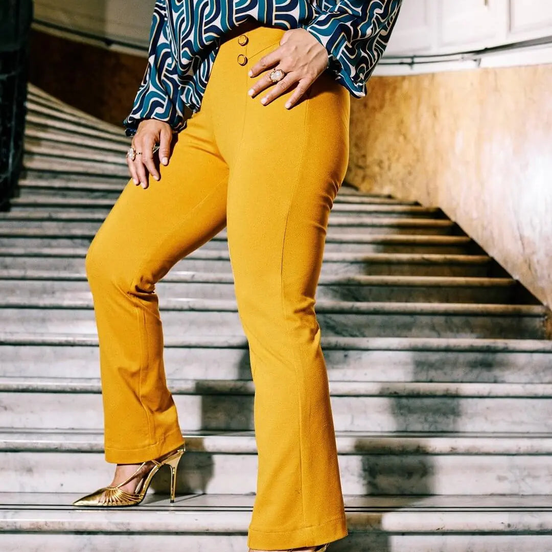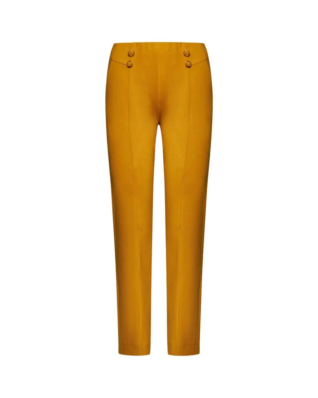 Pantalone capri viscosa elasticizzata con bottoni SENAPE