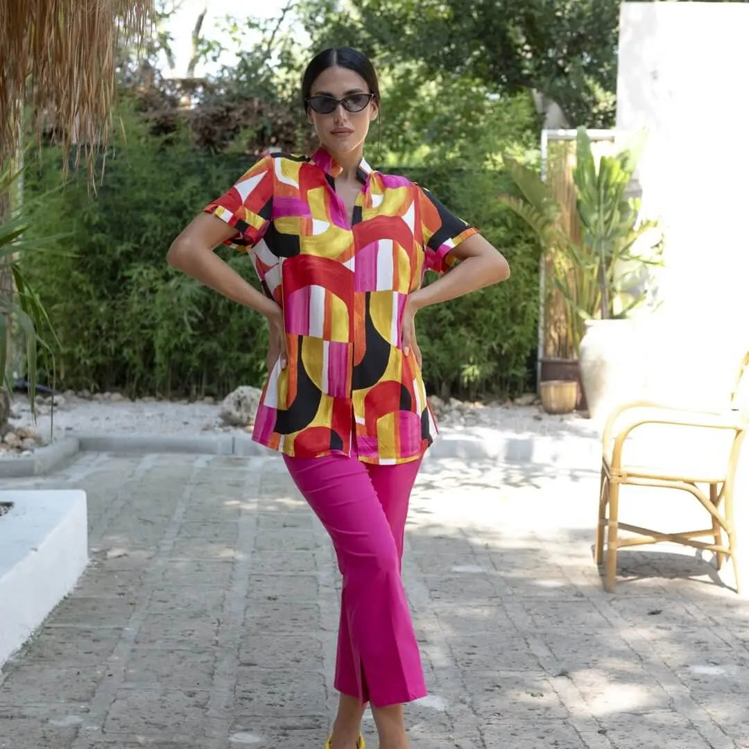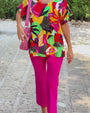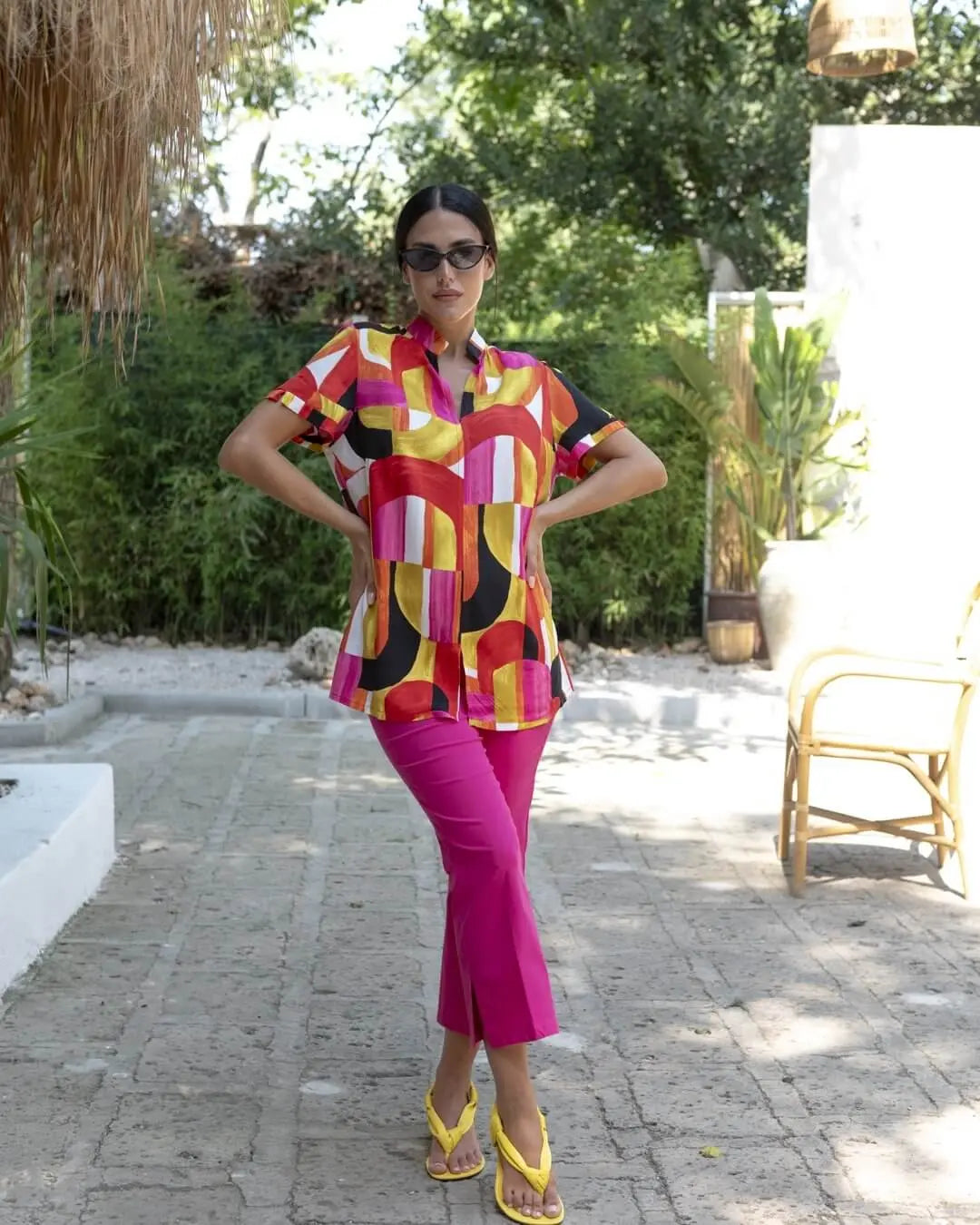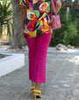 Pantalone skinny zampetta in twill di misto viscosa elasticizzata tinta unita. FUXIA