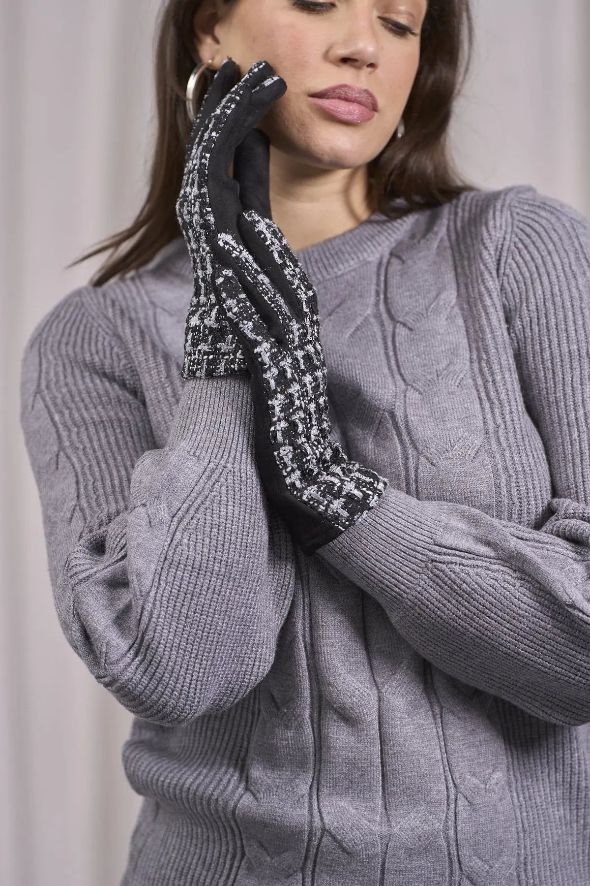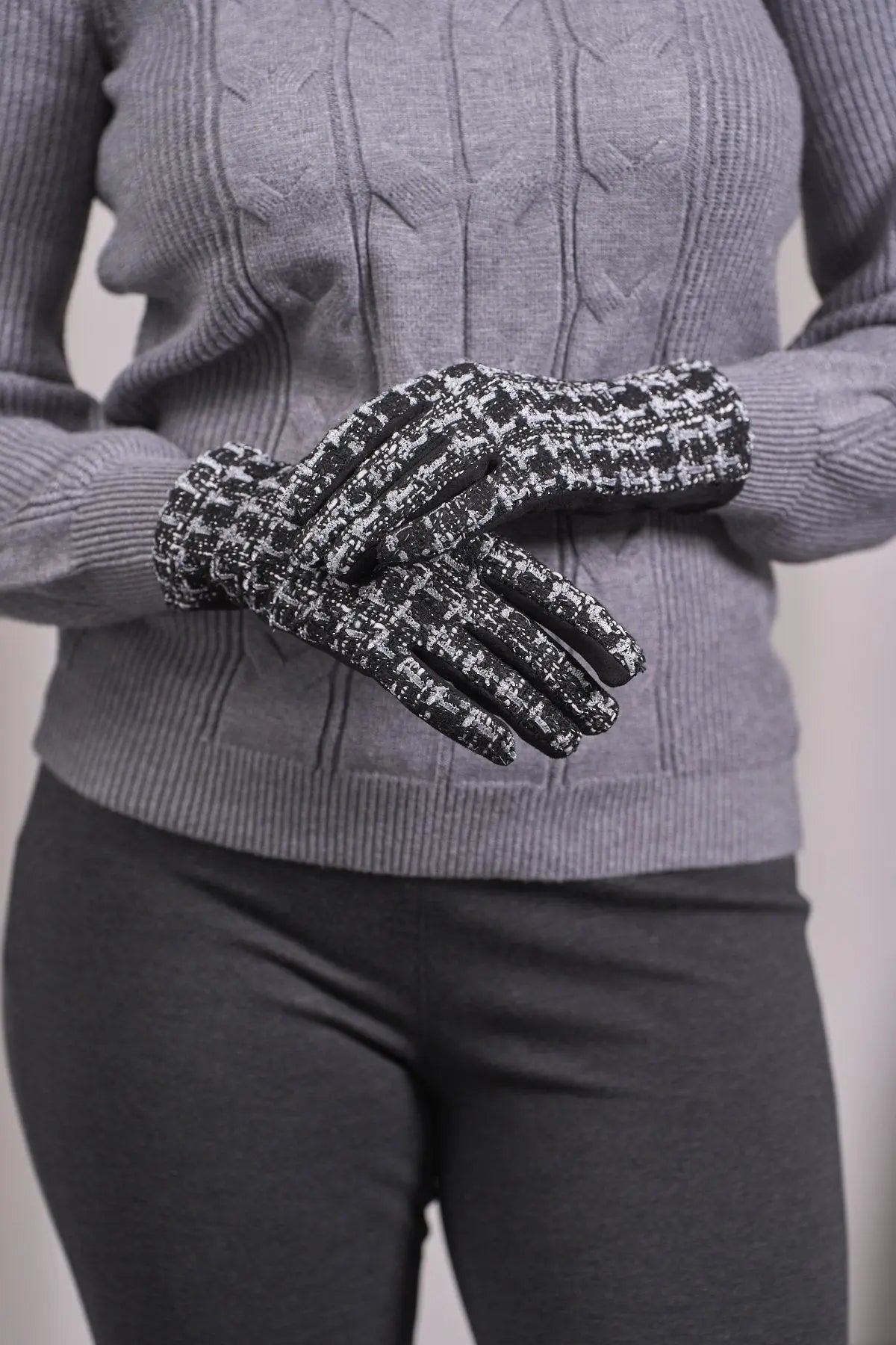 Guanti bimaterici in tessuto blucle fantasia GRIGIO