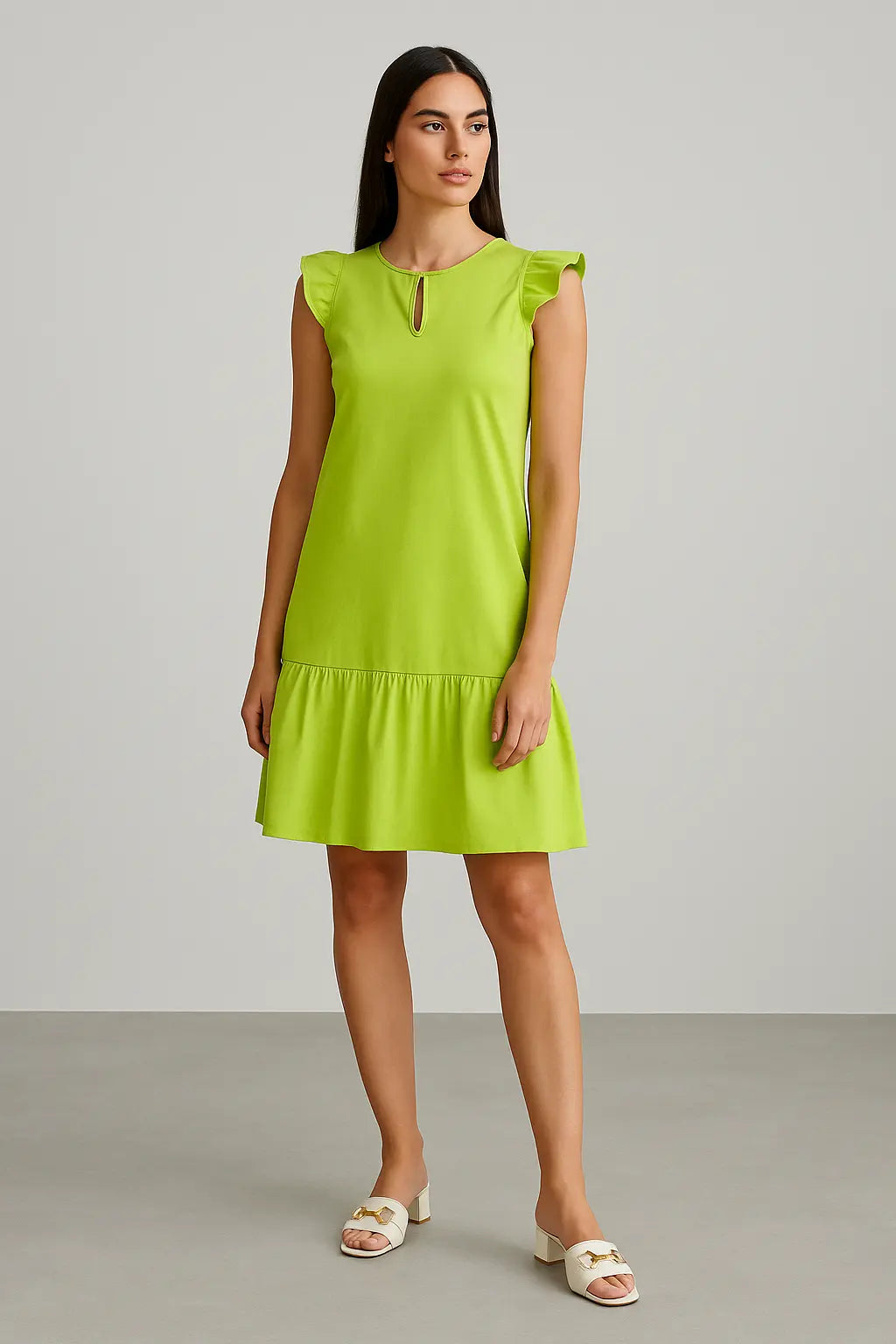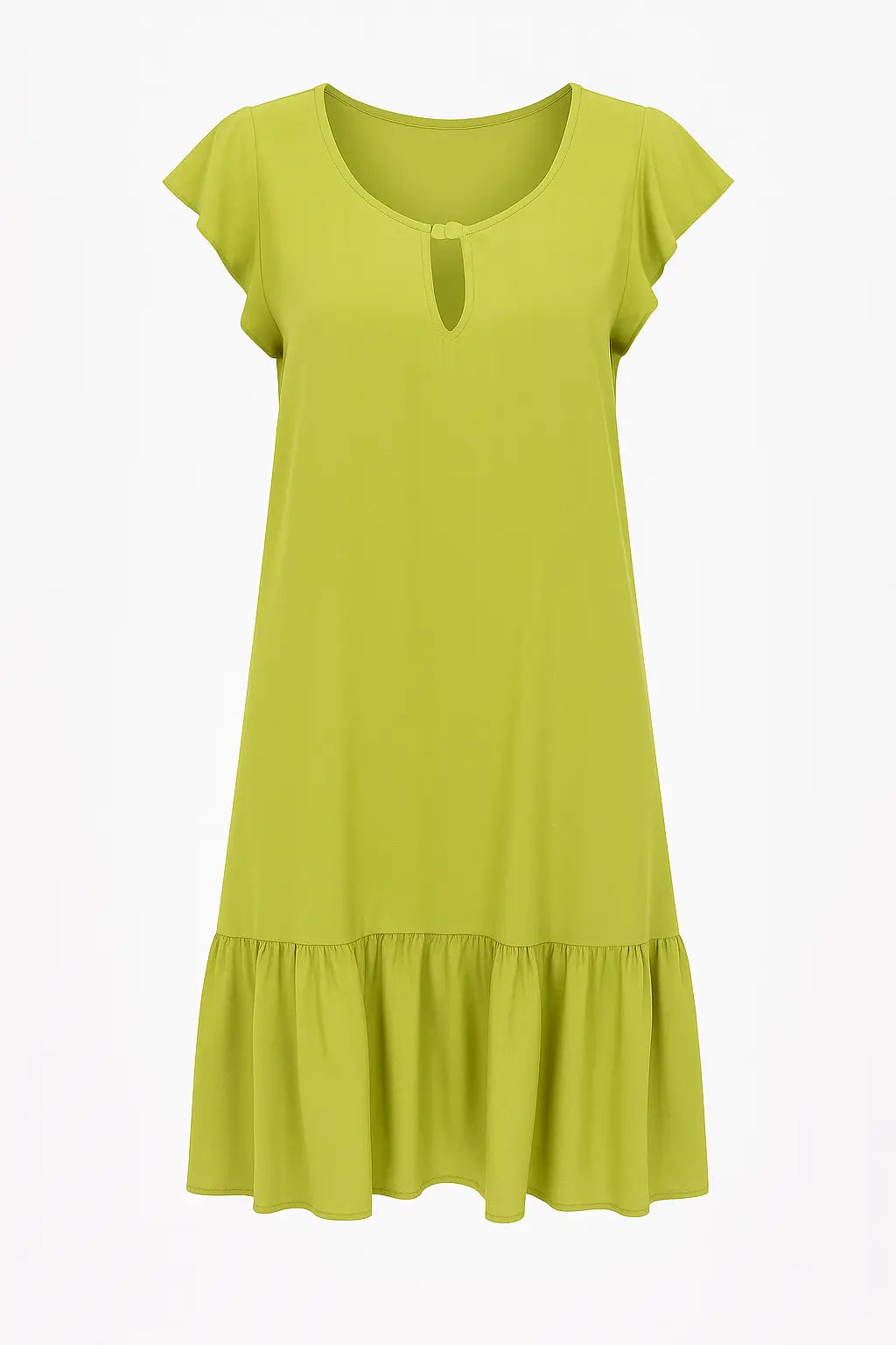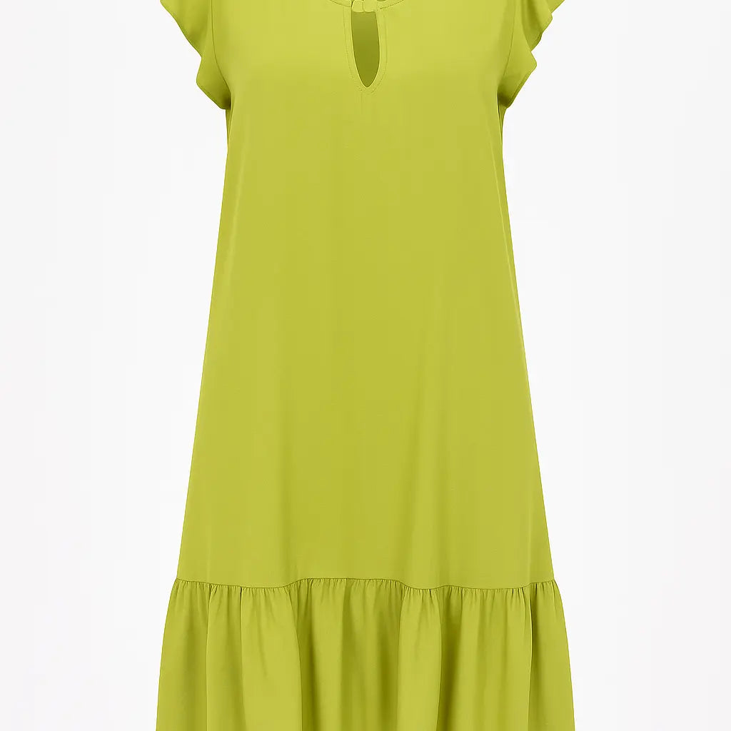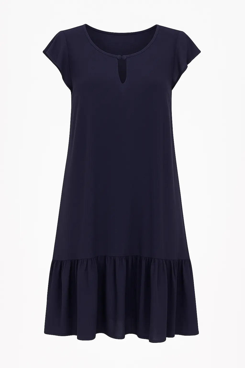 Questo abito in viscosa presenta un pratico collo pistagna, apertura frontale a goccia e una balza sul fondo per un tocco di eleganza. Dal fit destrutturato, ampio e non aderente, questo abito delinea la silhoutte senza costringerla ,ma sottolineandone la femminilità. Il tessuto in fluido di viscosa, offreun comfort comodo e traspirante, rendendolo perfetto sia per il giorno che per la sera. Ideale da indossare ogni giorno.
