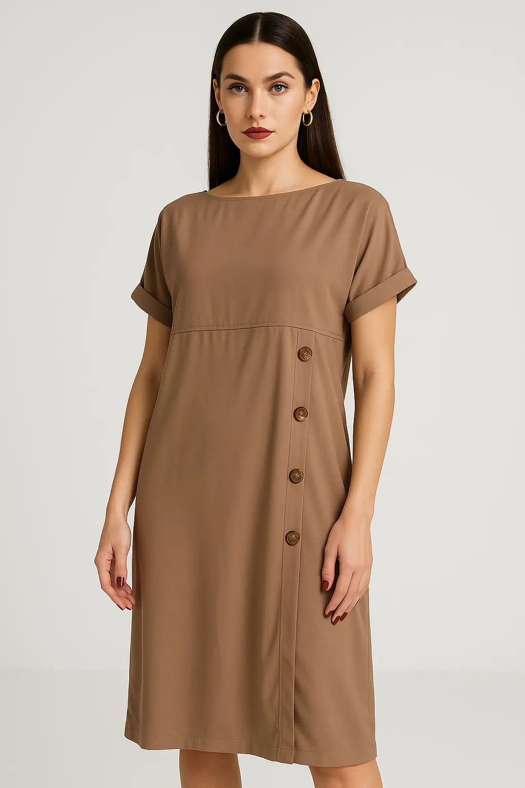 Abito girocollo con dettaglio bottoni frontali in viscosa