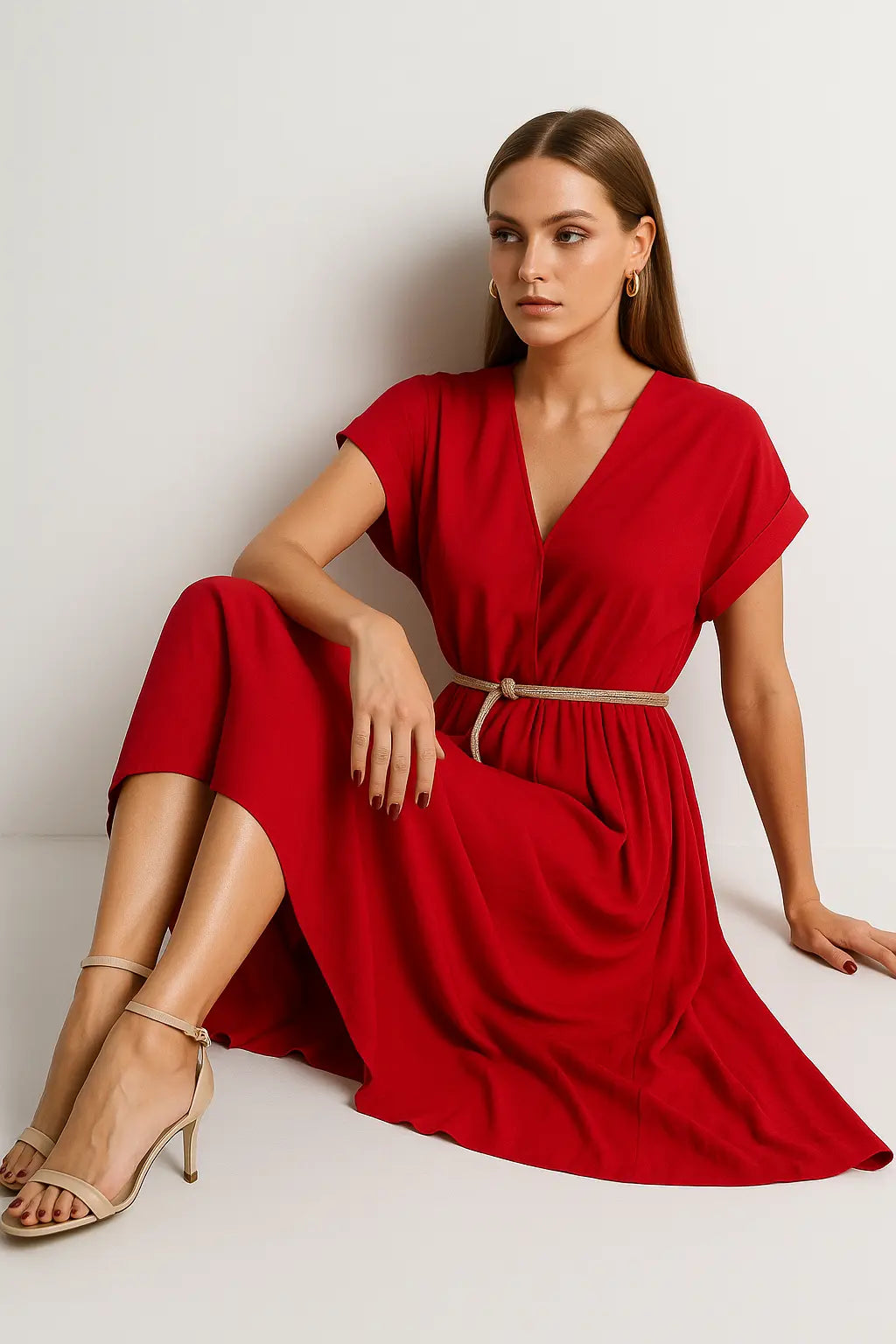 Abito kimono con scollo a V e cintura
