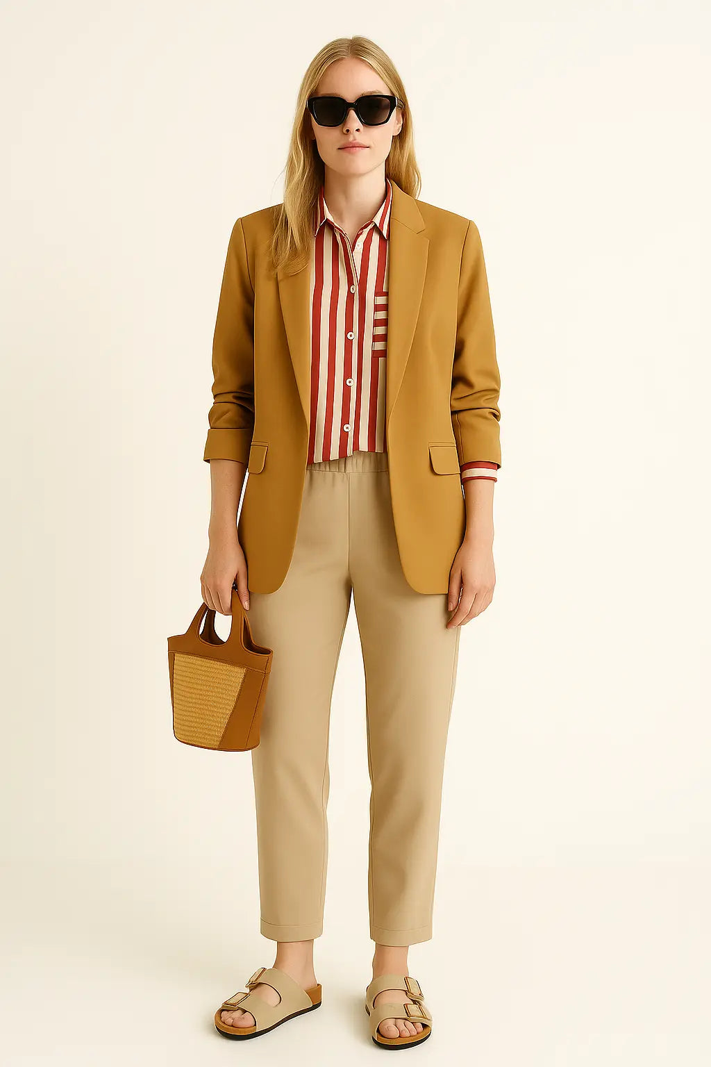 Minimalista ed elegante, questo blazer, senza chiusura, dal fit regular, è un capo chiave del guardaroba femminile contemporaneo. La sua linea pulita e il taglio morbido si adattano con versatilità sia a look formali che a quelli più rilassati, mantenendo sempre un'eleganza sobria e raffinata.