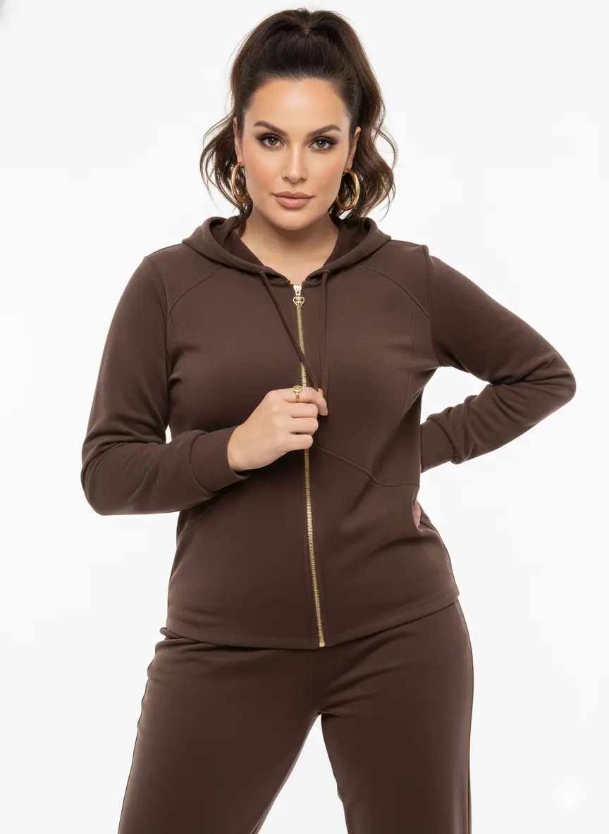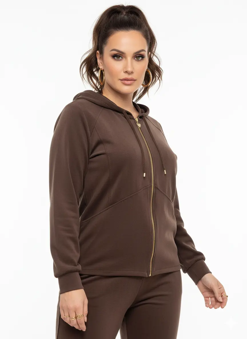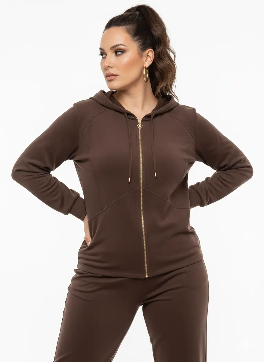 Un capo che unisce praticità e stile, perfetto per look casual chic e momenti di relax. La felpa con zip frontale e cappuccio, dona comfort e un tocco sofisticato anche all’abbigliamento sportivo.