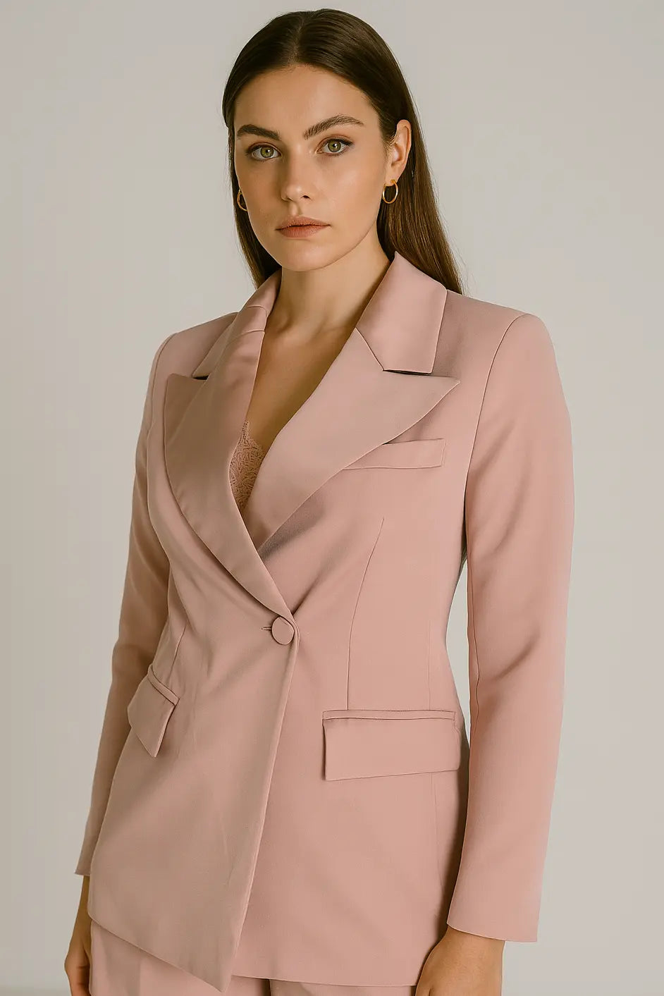 Giacca oversize doppio petto con rever e collo in raso a tono