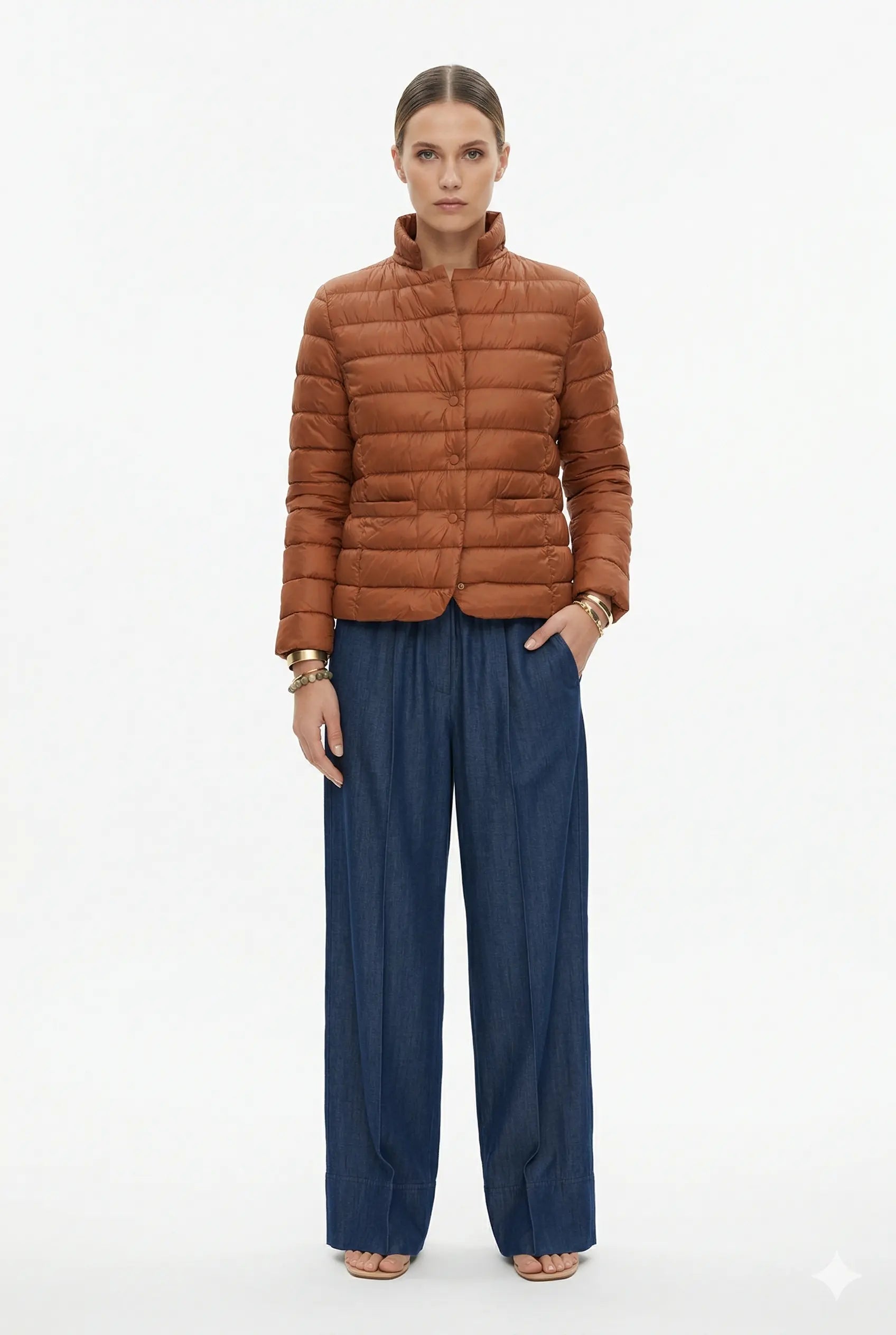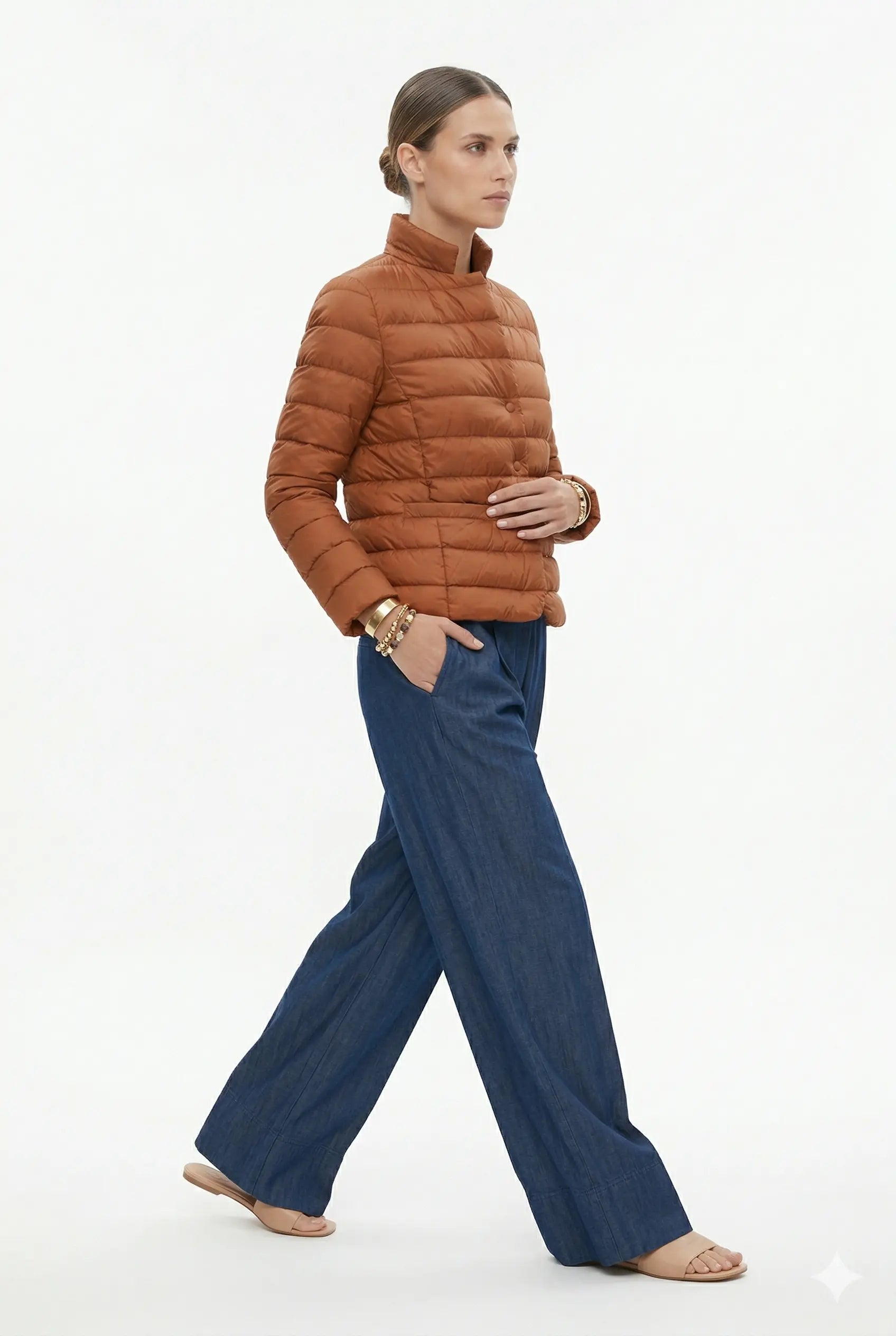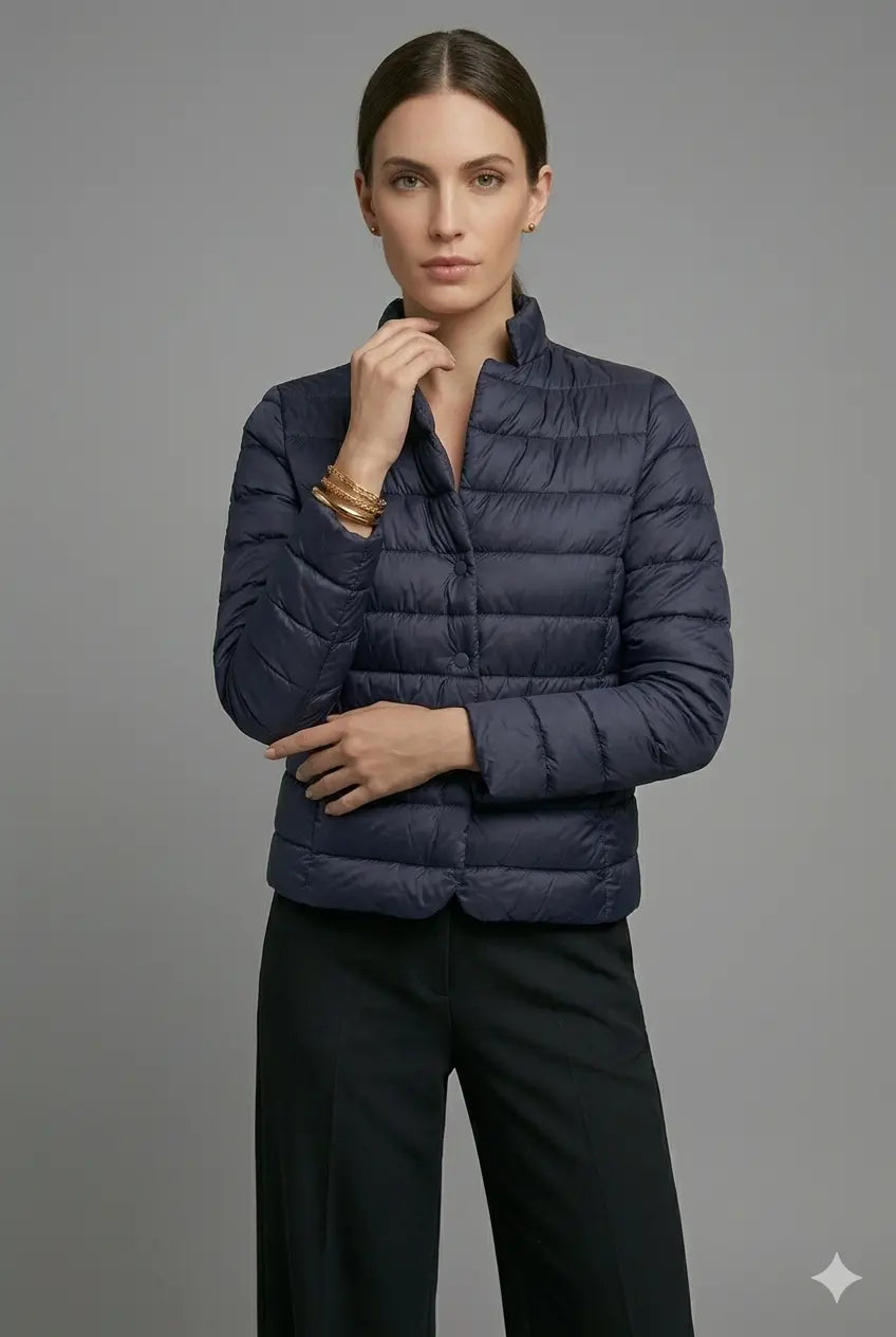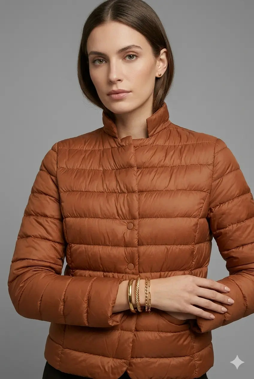 Elegante nella sua semplicità, questo giubbino corto imbottito è il capospalla indispensabile per chi cerca comfort e stile in un’unica soluzione. La sua silhouette asciutta e leggermente sagomata è pensata per valorizzare la figura senza rinunciare alla praticità di un capo ultraleggero, ideale da indossare durante i primi freschi primaverili o nelle serate autunnali.