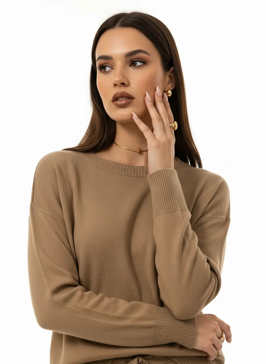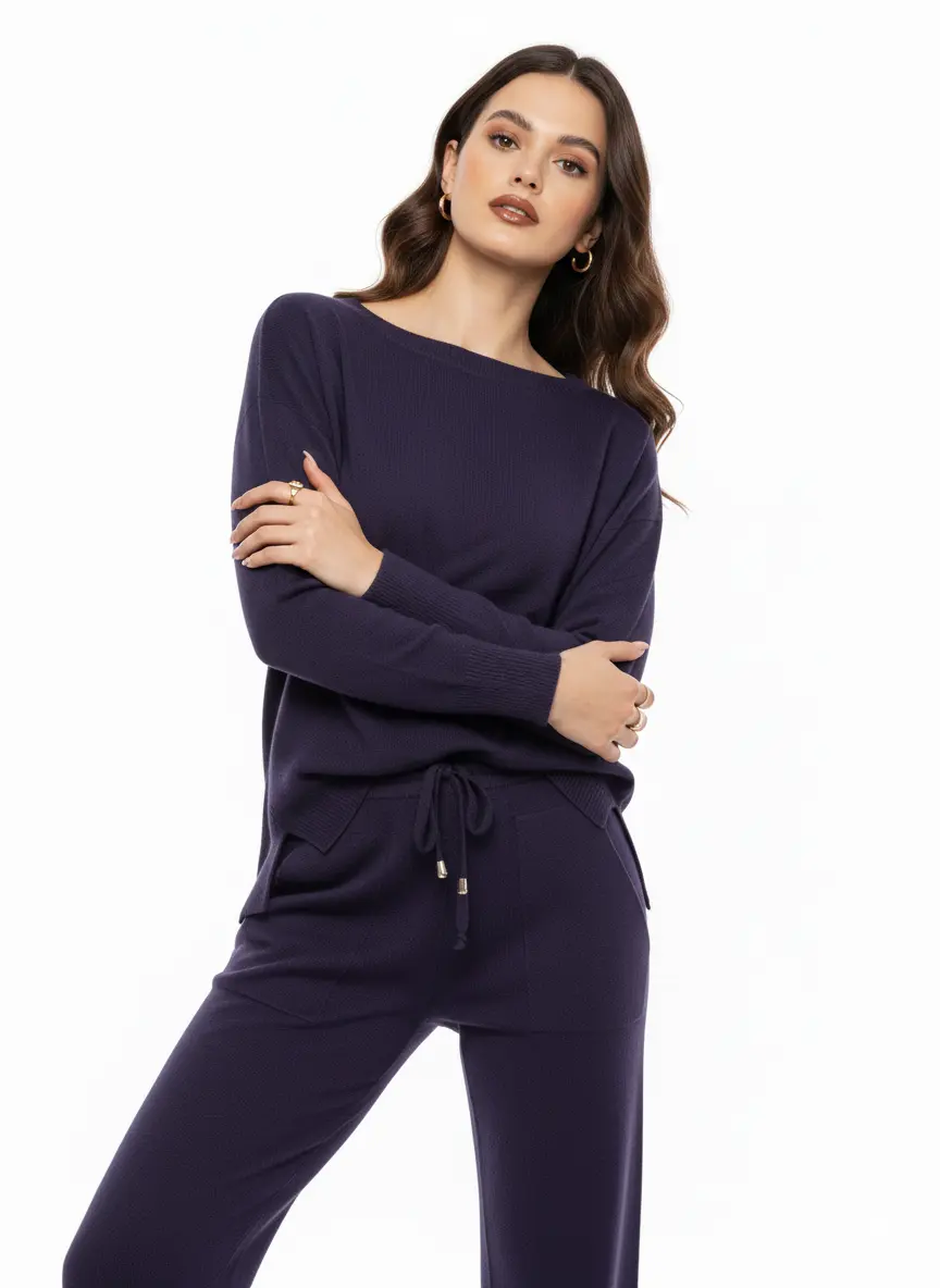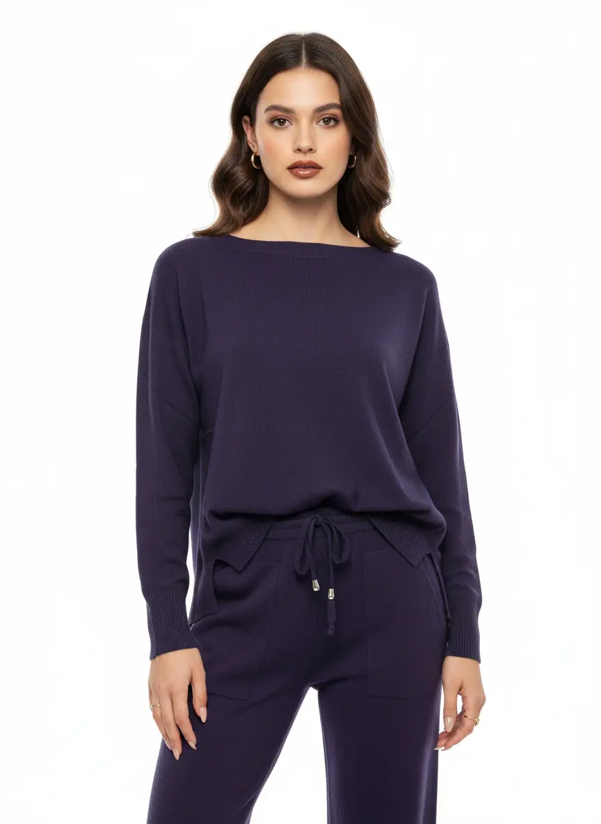 Eleganza e semplicità si fondono in questa maglia in maglia fine con scollo a barca, perfetta per look raffinati e minimalisti.