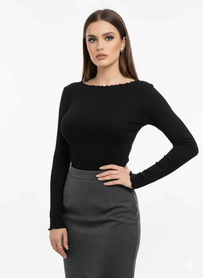 Dal taglio semplice e femminile, si adatta a ogni look, dal casual chic al più elegante. I dettagli smerlati su polsini e fondo le donano un tocco delicato e raffinato ✨.
