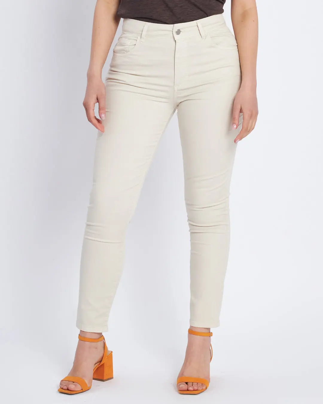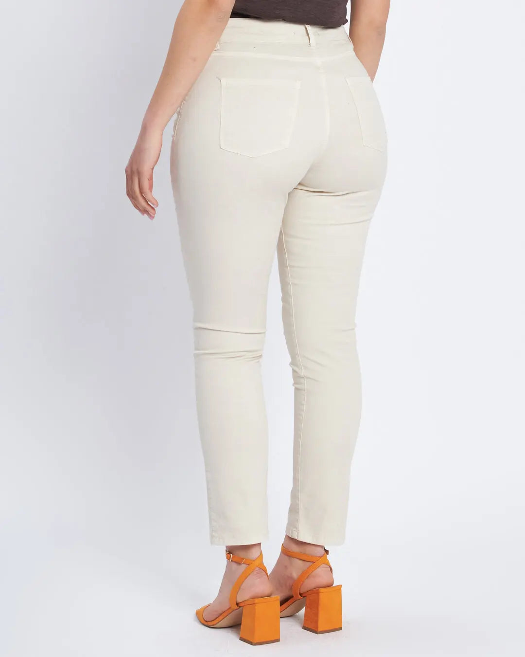 Un capo essenziale per il guardaroba contemporaneo, questo pantalone slim fit in cotone stretch unisce comfort e versatilità. Il taglio aderente valorizza la silhouette, mentre il colore sabbia neutro lo rende perfetto da abbinare con una vasta gamma di tonalità. Ideale sia per look casual con sneakers, che per outfit più eleganti con tacchi e bluse.