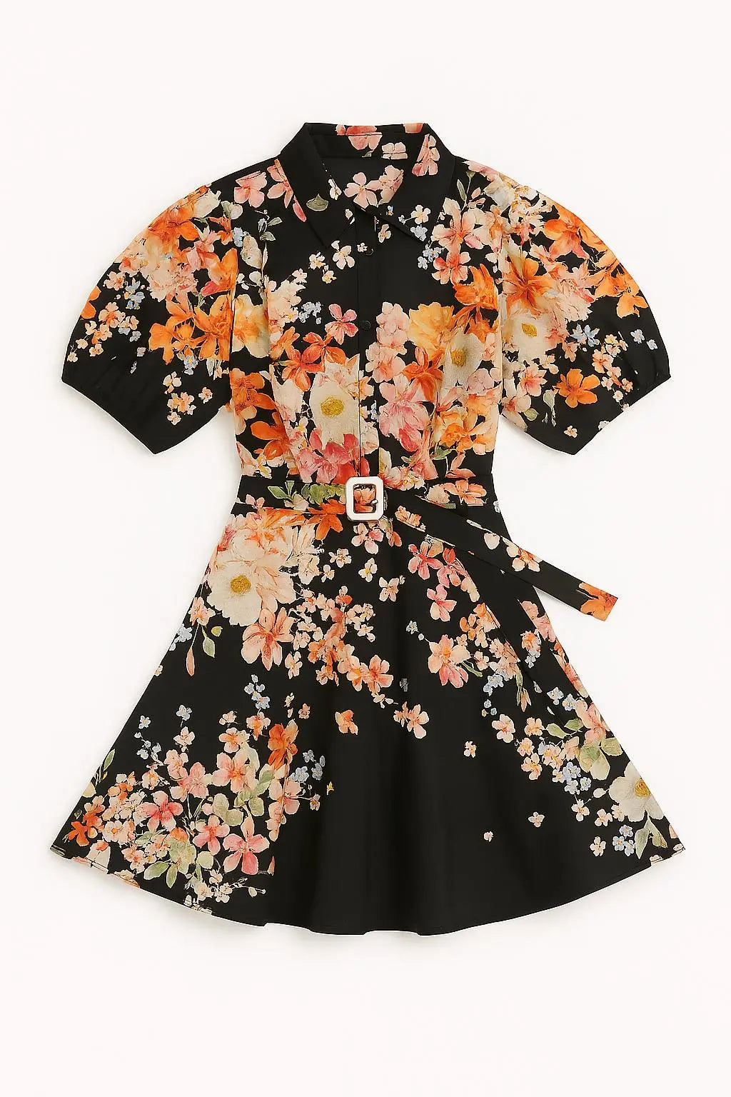 Questo abito corto con maniche a palloncino è perfetto per gli eventi di primavera ed estate. La stampa floreale è super trendy e la cintura aggiunge un tocco di eleganza. Crea un look alla moda e femminile con questo abito nero.