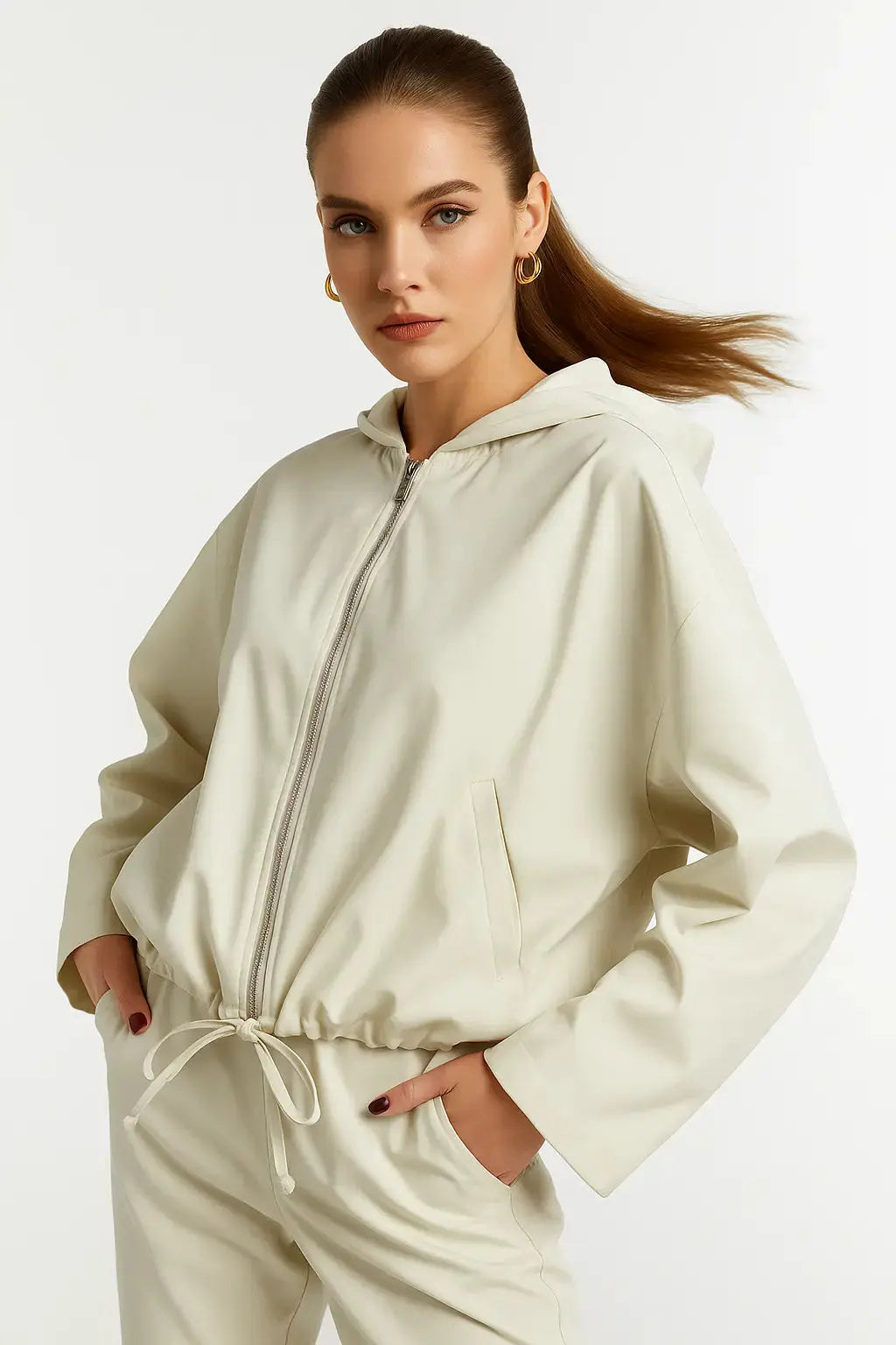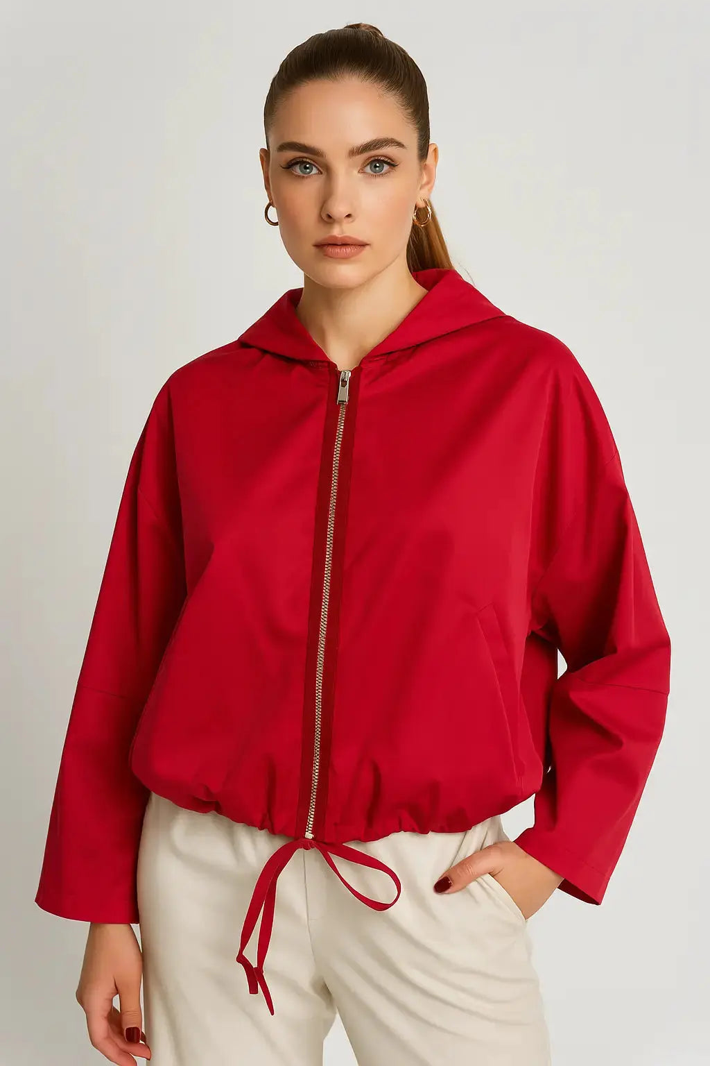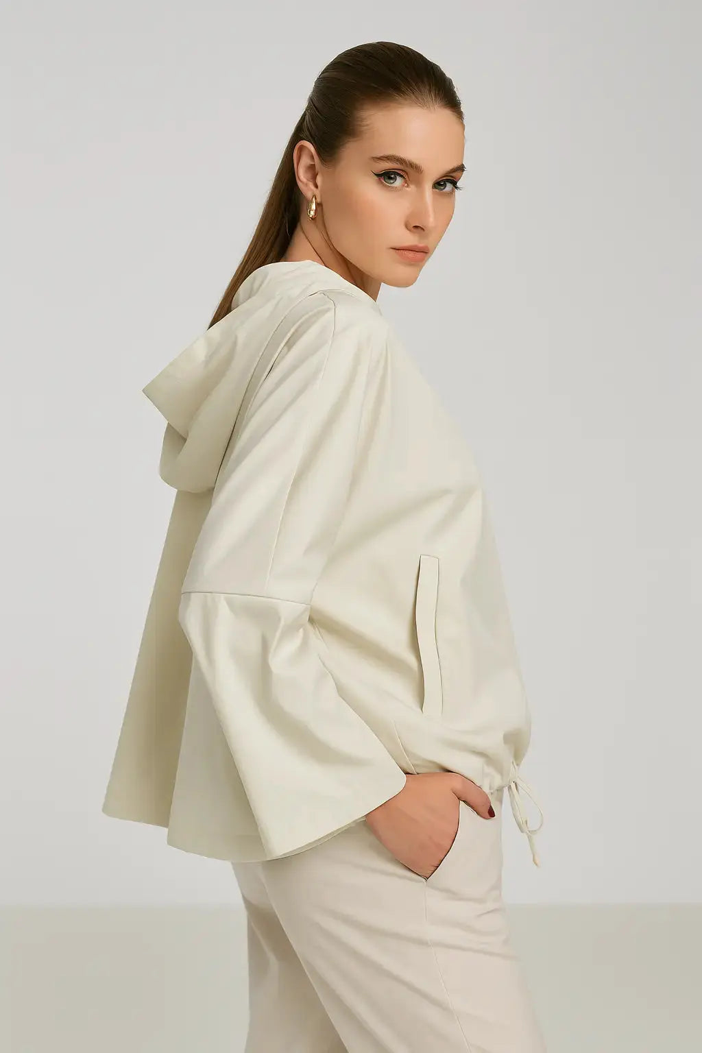 Sii pronto per affrontare i cambi di temperatura con lo spolverino con cappuccio in tessuto spalmato. Perfetto per i primi giorni di primavera o le sere d'estate, questo giubbetto è il tuo nuovo alleato di stile per le belle stagioni. Rimani comodo e alla moda con questo capo versatile e leggero.